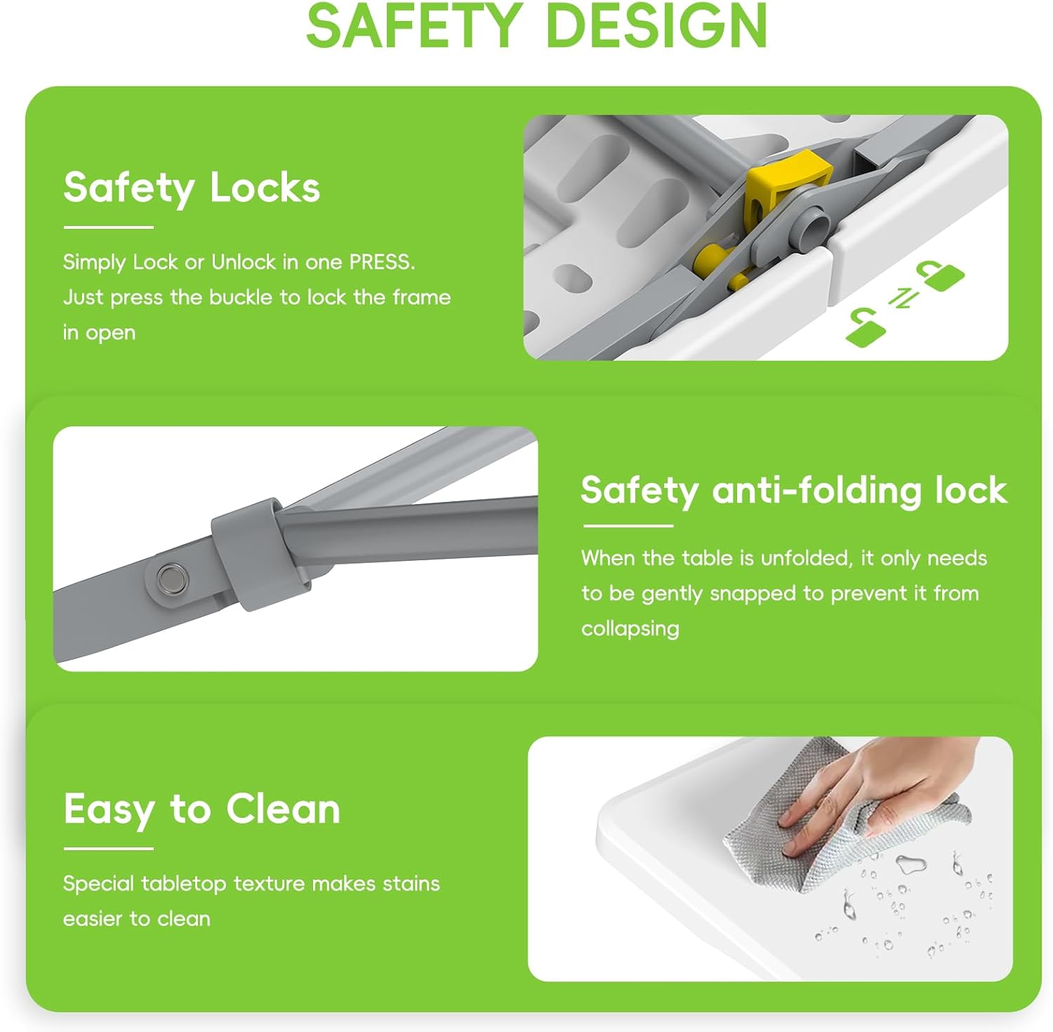 - Safe & Secure Design: Equipped with both a triangular bracket anti-folding lock and a safety lock on the back of the table top, this foldable table and bench set provides added safety and security during use