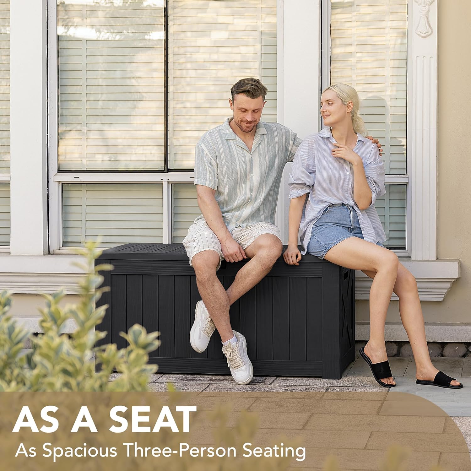 Devoko 120 Gallon Deck Box Resin Outdoor Storage Box Waterproof for Patio, Large Outdoor Storage Bench Lockable for Outside (Black)