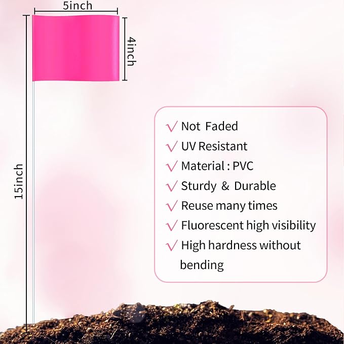 - ⛳【STURDY, NOT FALL】 - Our marker flags are glued on, not wrapped, which makes them much harder to get blown away or removed. The pole itself is made of steel metal wire rather than plastic for better durability. Bright fluorescent Pink as clear visual warnings!