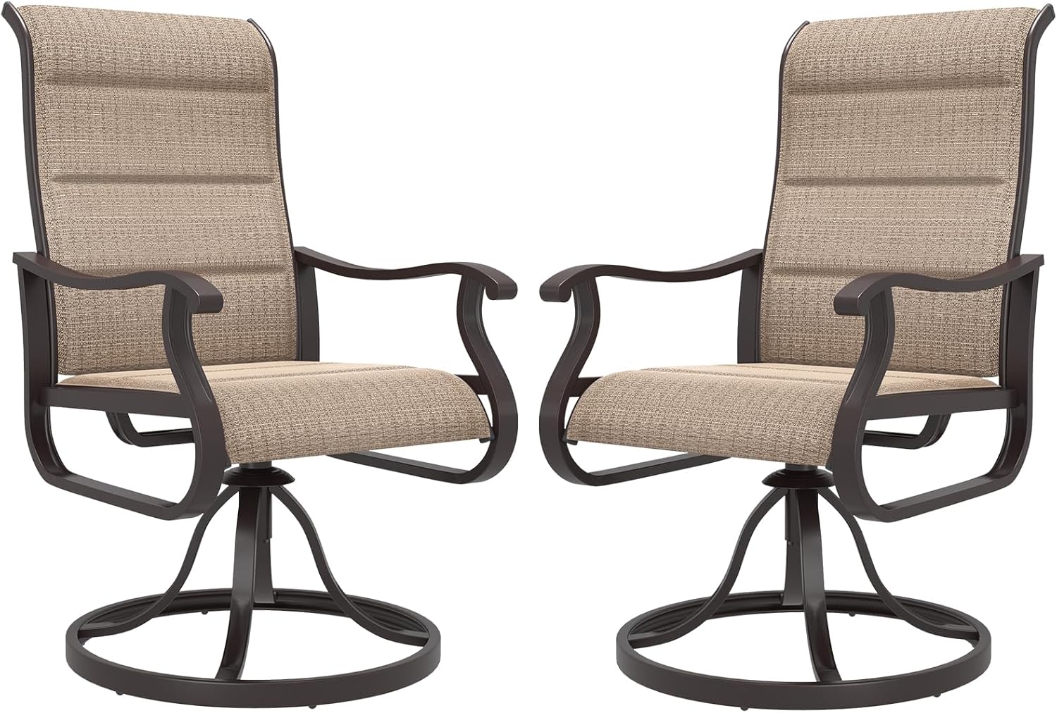 Amopatio Padded Patio Swivel Chairs Set of 2, Outdoor Dining Chairs with Ultra Soft Textilene High Back Seat & Metal Rocker Frame, for Backyard Deck Lawn, Brown