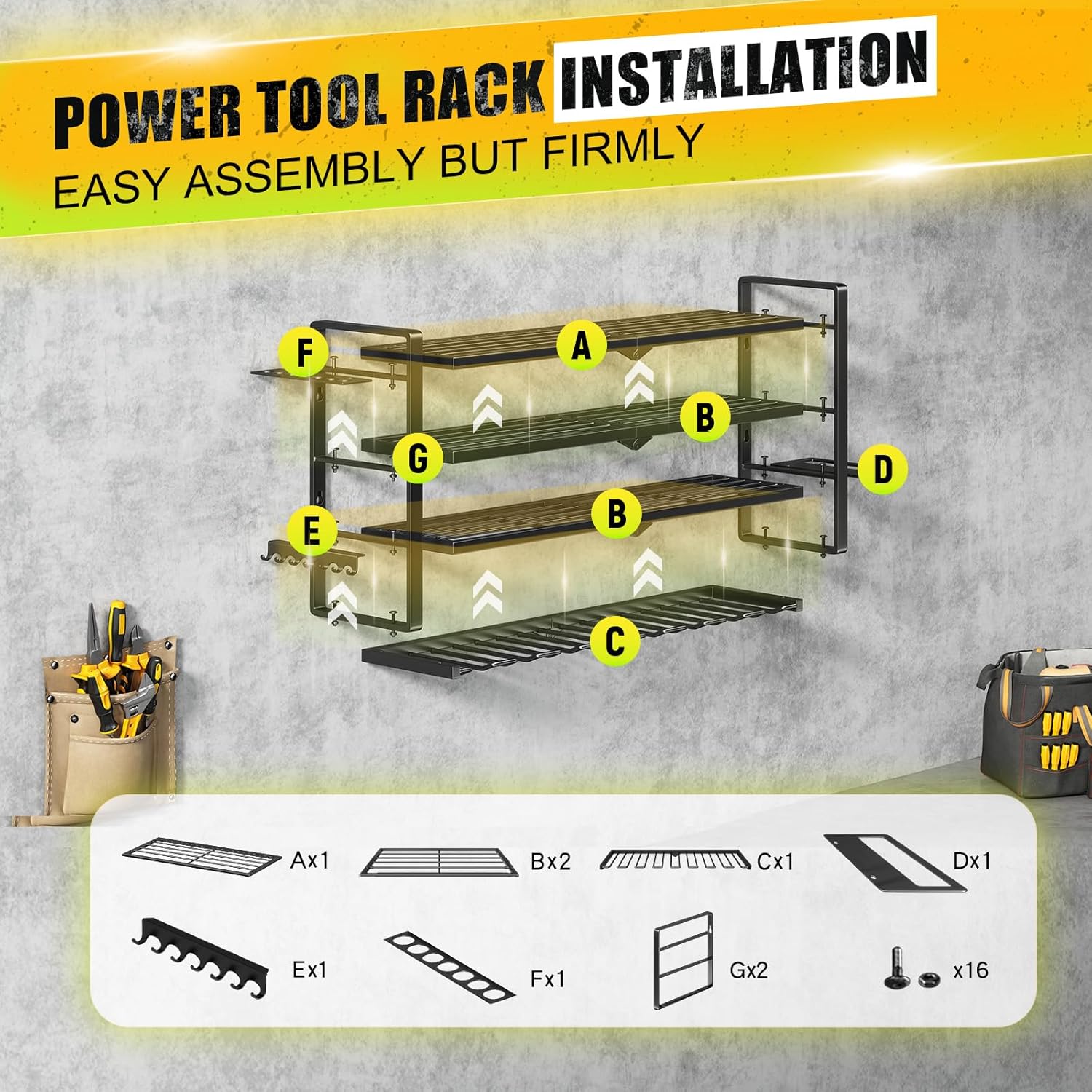 - Easy to Install: Our power tool organizer wall mount includes all necessary mounting hardware and clear instructions for easy installation. refer to the professional installation manual, you can assemble a perfect tool rack wall mount in just a few minutes.