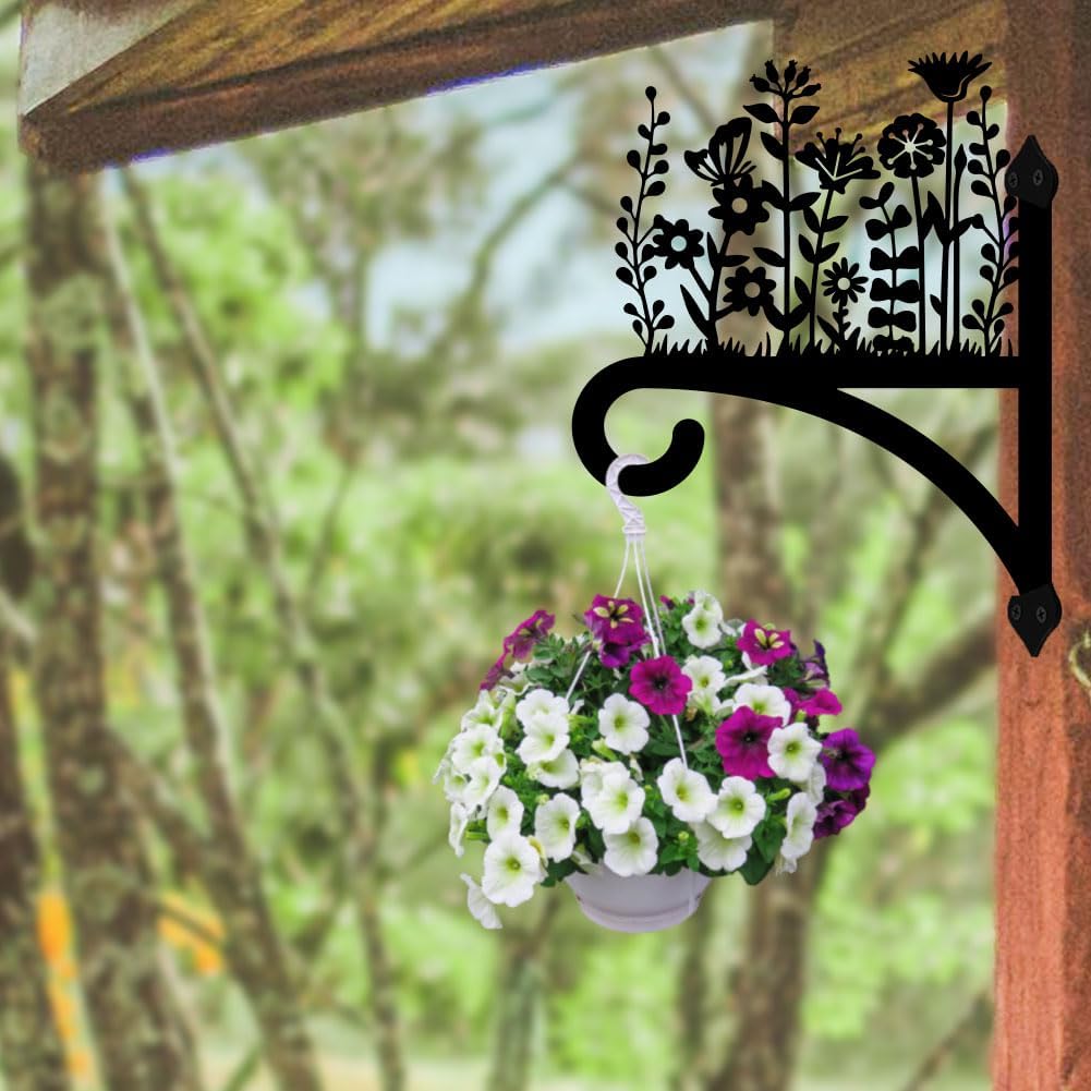 Peacoblue Iron Plant Hangers Hooks for Outdoor Indoor Hanging Plants Flower Fern Pot Lantern Bird Feeder Wind Chimes, 12"x15" Weather Resistant Metal Wall Holder for Porch Garden Farmhouse(Wildflower)