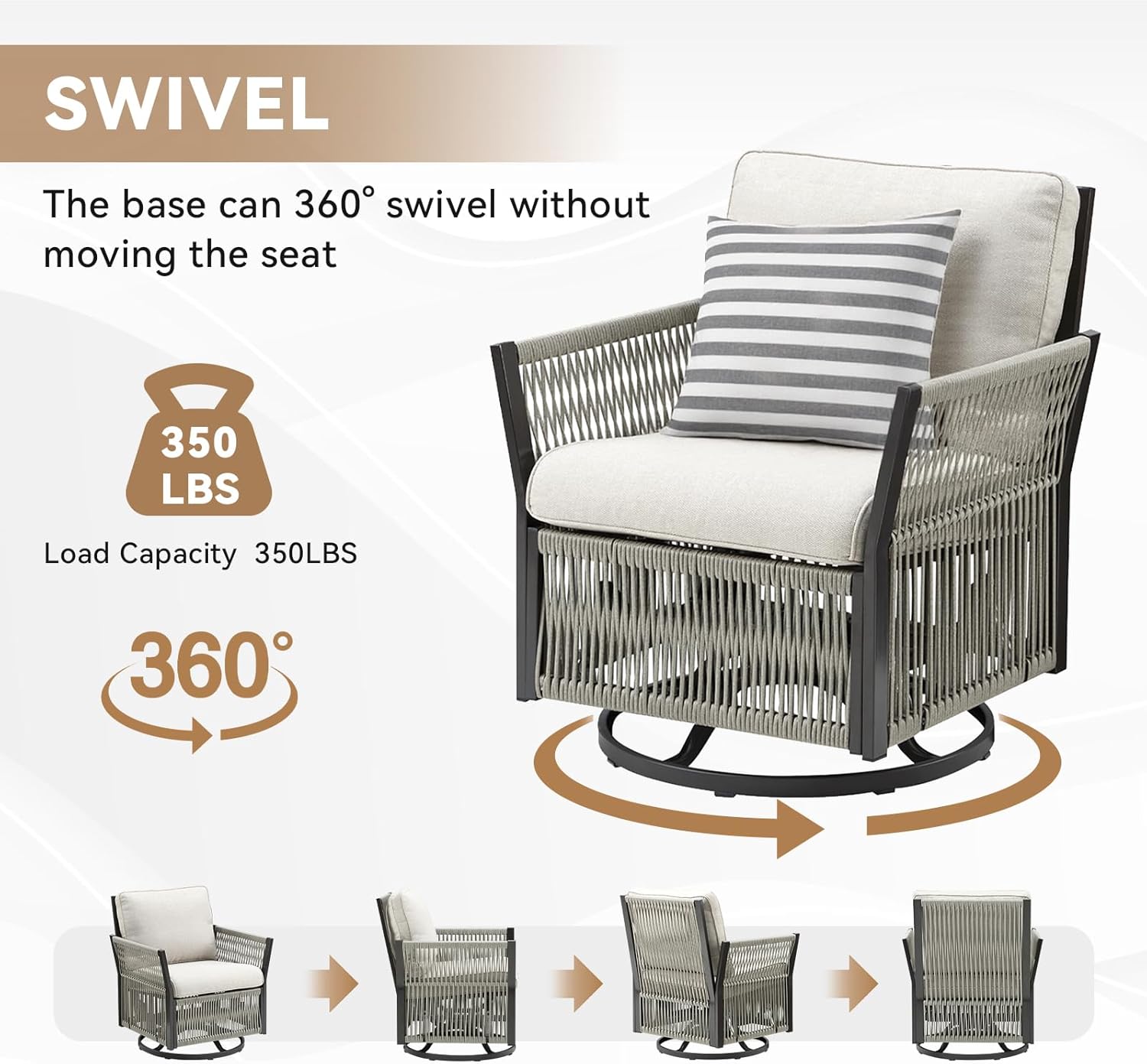 Patio Furniture Wicker Outdoor Conversation Set, 9-Piece All Weather Patio Furniture Rattan Sofa Sets w/Swivel Rocking Chairs & Ottomans, Side Table for Backyard, Balcony, Deck, Beige