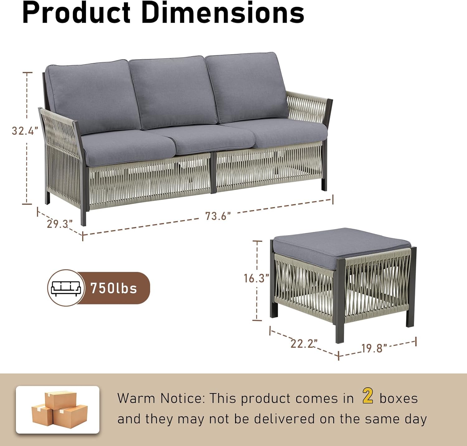 - Durable and Easy-to-Maintain Fabric: The cushions are crafted from Olefin fabric, offering 800 hours of UV protection and water resistance, making this outdoor couch ideal for all-weather use. The covers are removable and washable, featuring hidden zippers for easy cleaning. Enjoy a low-maintenance patio set that stays fresh and inviting throughout the seasons