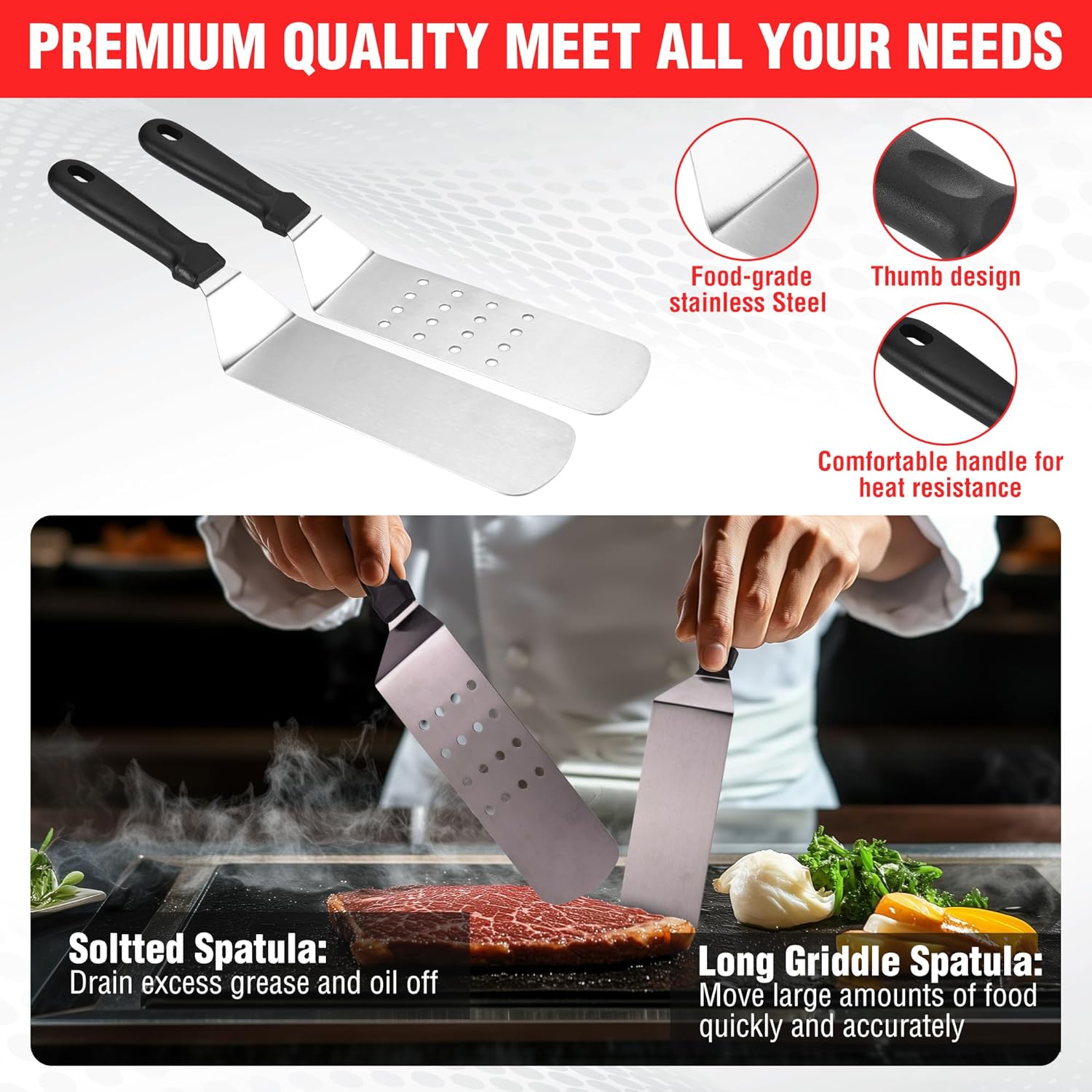 128 PCS Griddle Accessories Kit - Premium Flat Top Grill Accessories Set for Blackstone & Camp Chef, Stainless Steel BBQ Tool Utensils Gift Grilling Set for Lover Outdoor Men Women dad