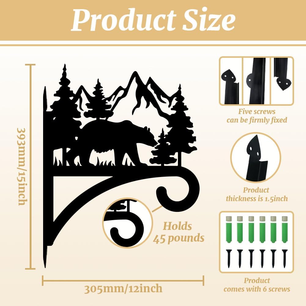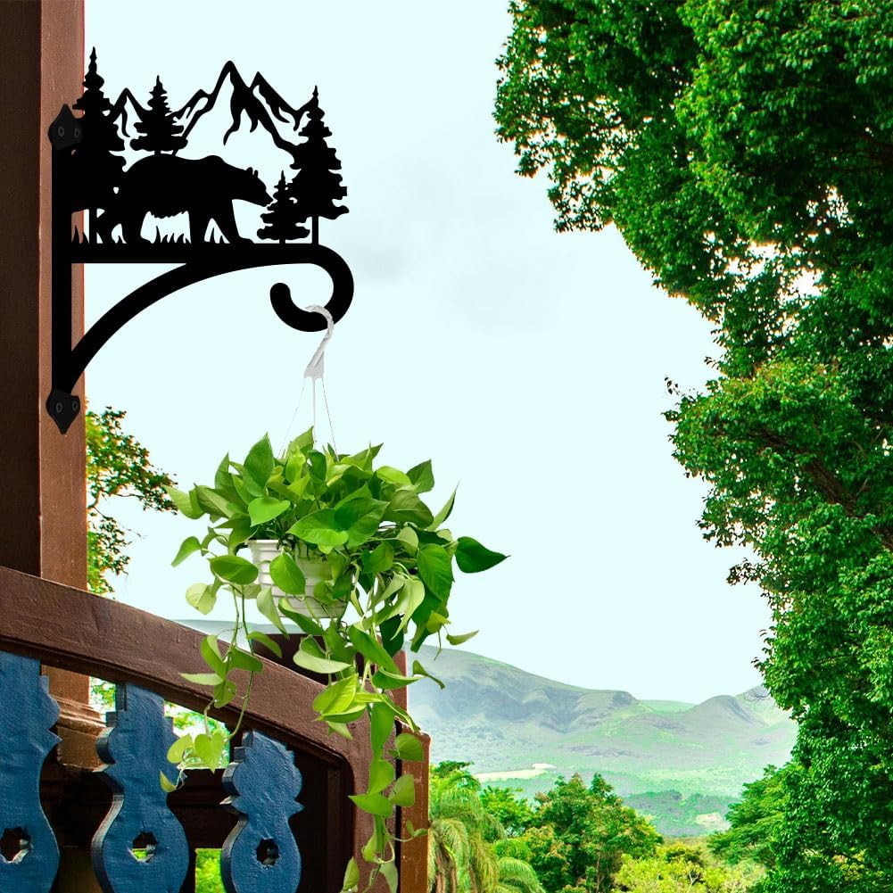 peacoblue Iron Plant Hanger Hook for Outdoor Indoor Hanging Plant Flower Fern Pot Lantern Bird Feeder,12"x15" Weather Resistant Metal Wall Holder for Porch Garden Farmhouse(Forest Bear and Mountain)