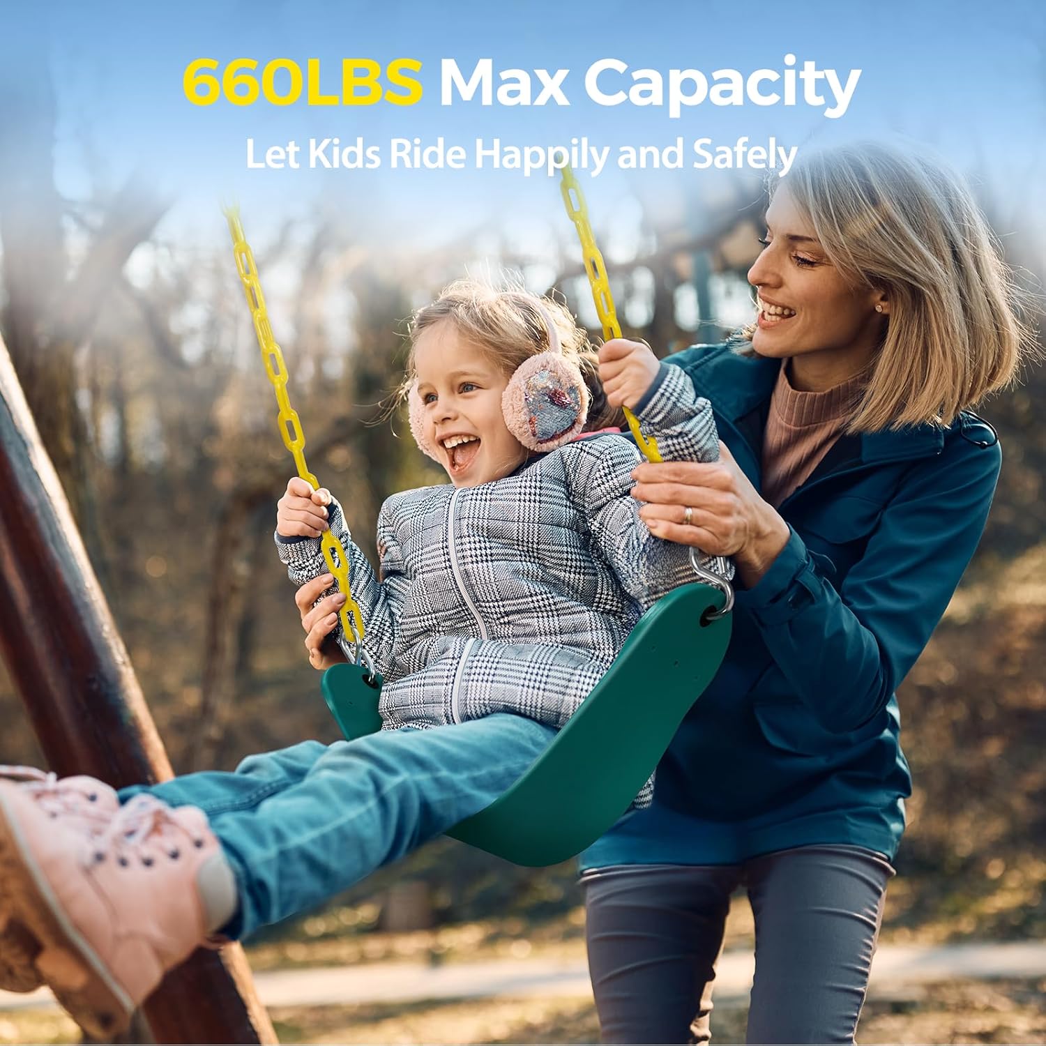 - 【Enjoy Your Spare Time with 660lb Capacity Swing Seat】 PACEARTH Swing Seat is designed for residential use, which can be hung from a beam or tree limb and is suitable both for children and adults. Compare to other swing sets of 300 lbs weight limit,our swing seat replacement load capacity is two times greater of them and reaches 660 lbs. So just rest assured on our tree swings for kids & adults.