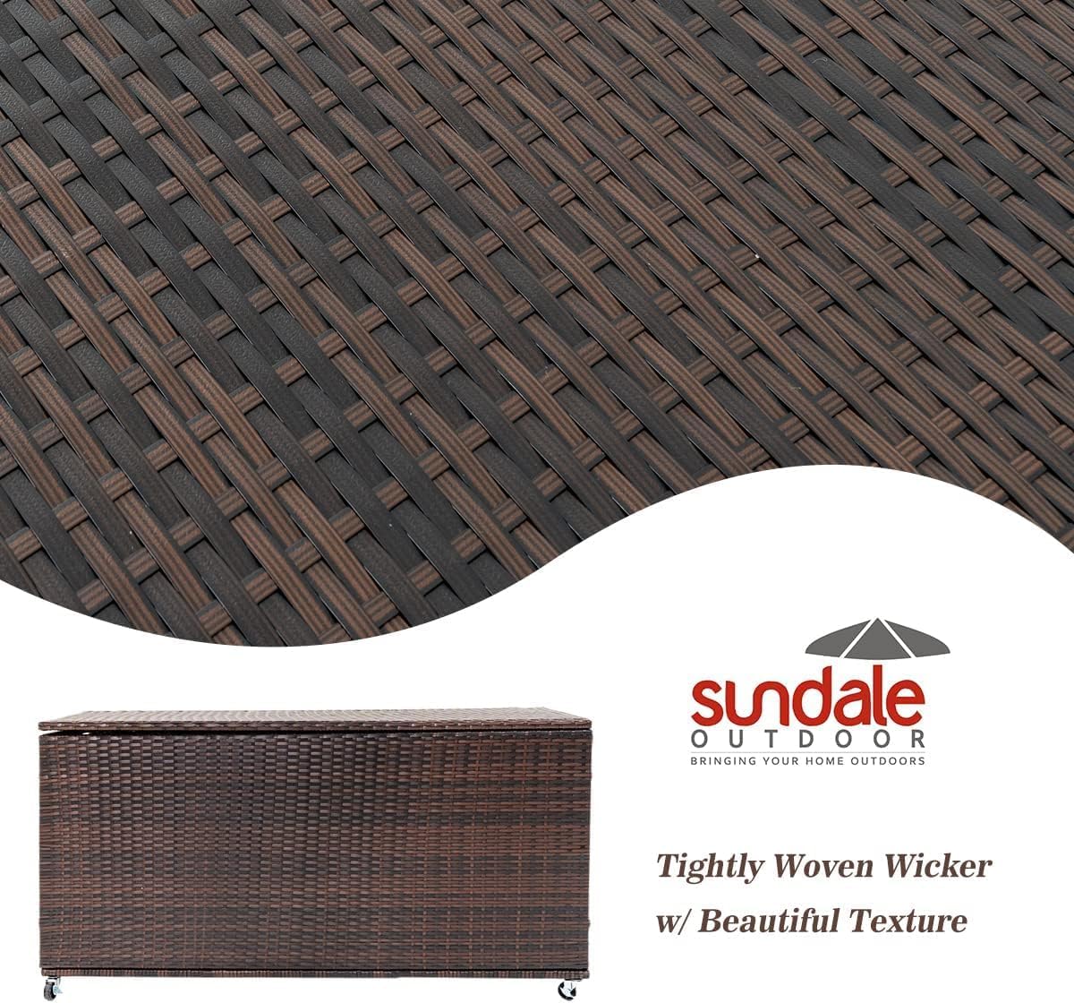- 【WHAT YOU GET】Outdoor 170 gallon storage container, waterproof lining with zip and all hardware. Sundale Outdoor premium wicker prevents the bar stools from absorbing water on rainy days, making them easy to clean and ideal for use on the balcony, front porch, or deck.