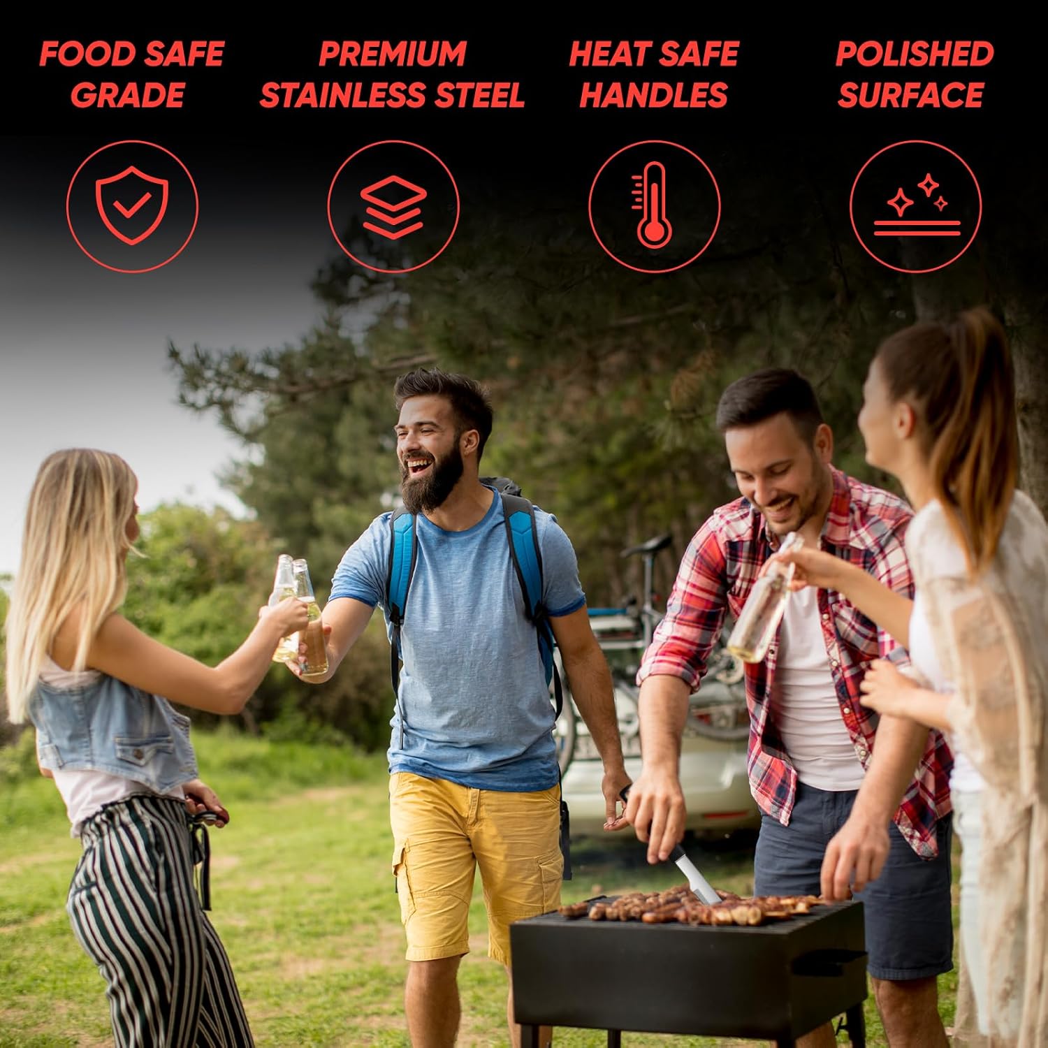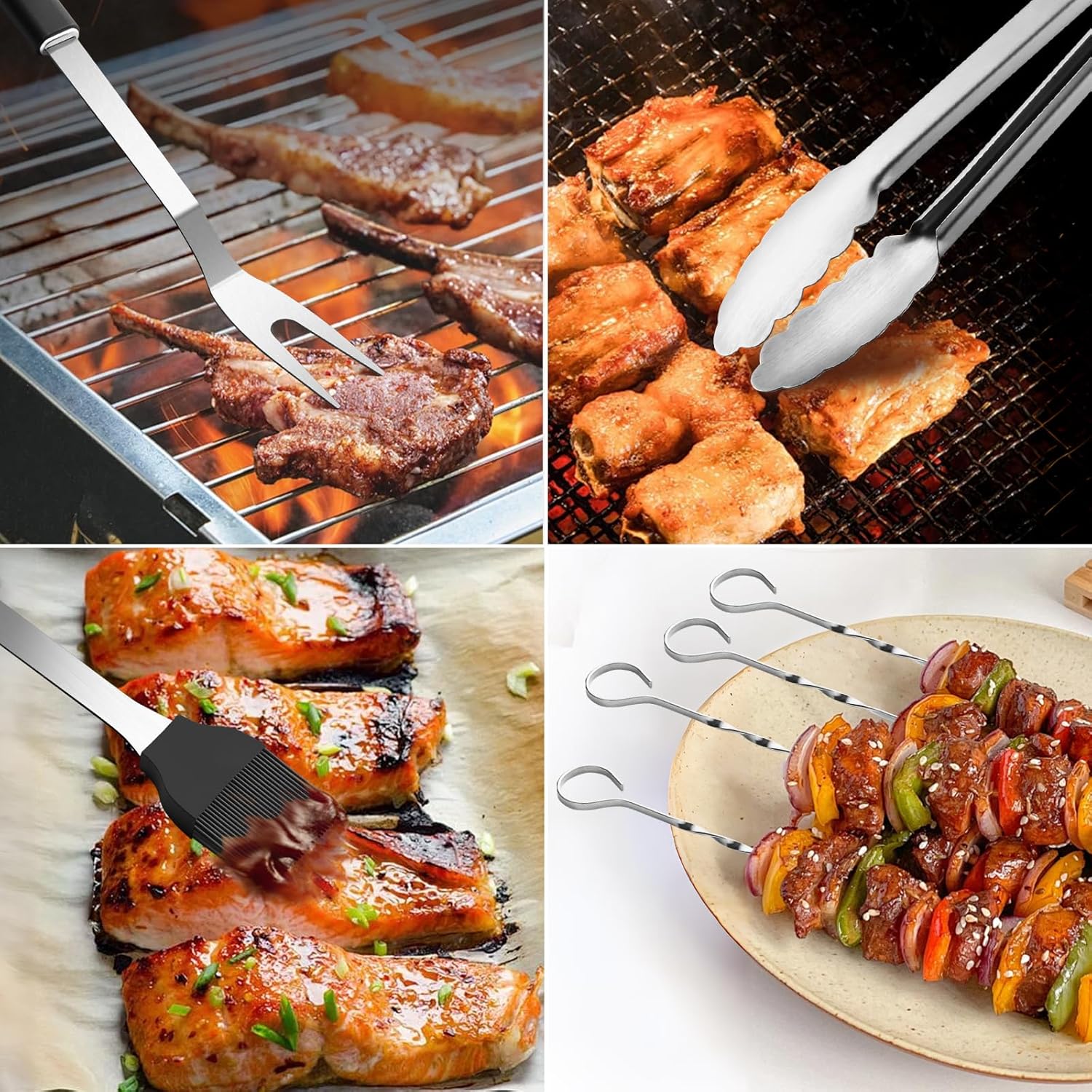 - [High-Quality Stainless Steel barbeque grill accessories]:Grill set for outdoor grill is made from premium food grade stainless steel with anti-rust brushed surface,which is bpa free,high heat-resistant and rust-proof,sturdy and easy to clean.Our BBQ utensils for grill kit is built to last,you can easily enjoy grilling,camping trips or backyard cooking without worrying about your BBQ tool bending!Never rusts or cracks!