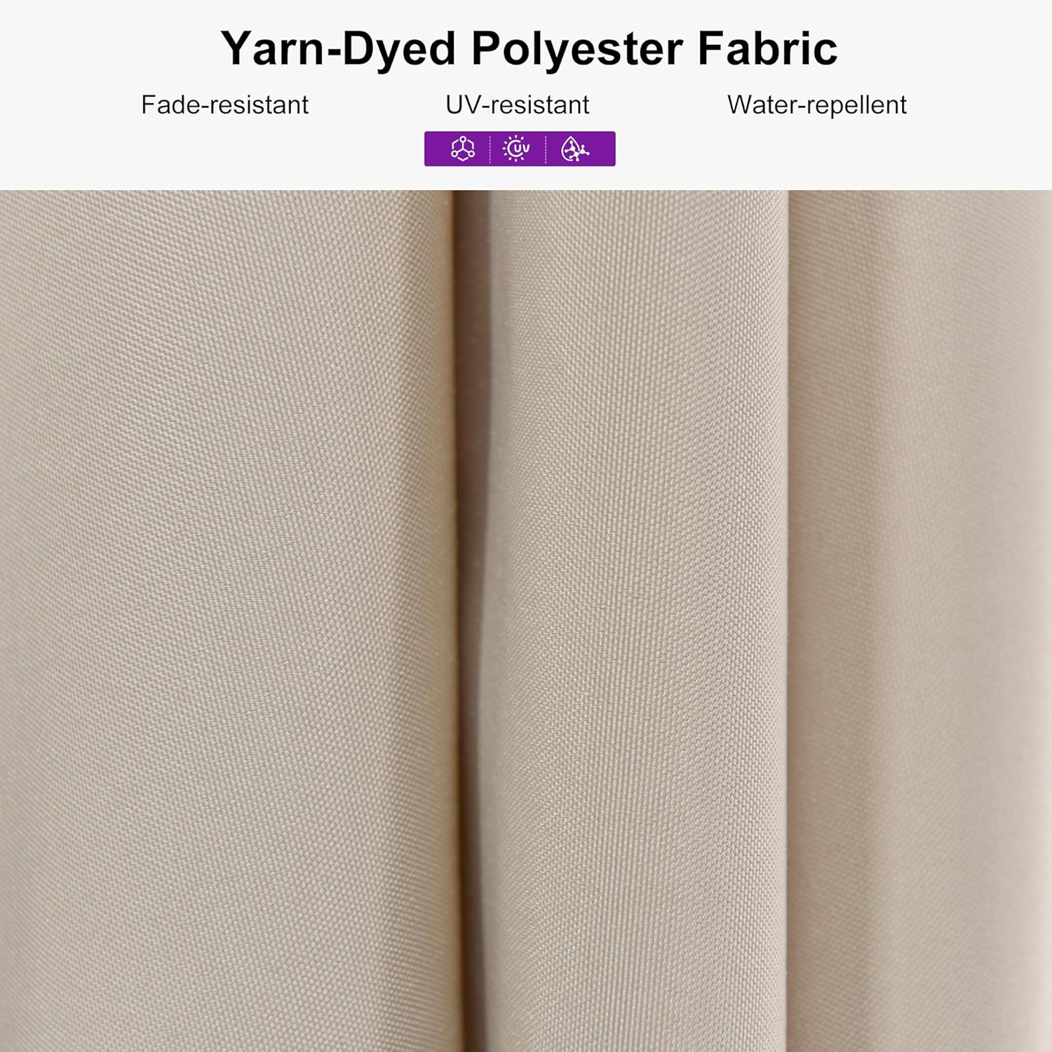 - Premium Fabric: Table umbrellas are made from 200 gsm waterproof polyester fabric with a UPF 50+ rating and AATCC Level 4 for excellent UV protection and fade resistance