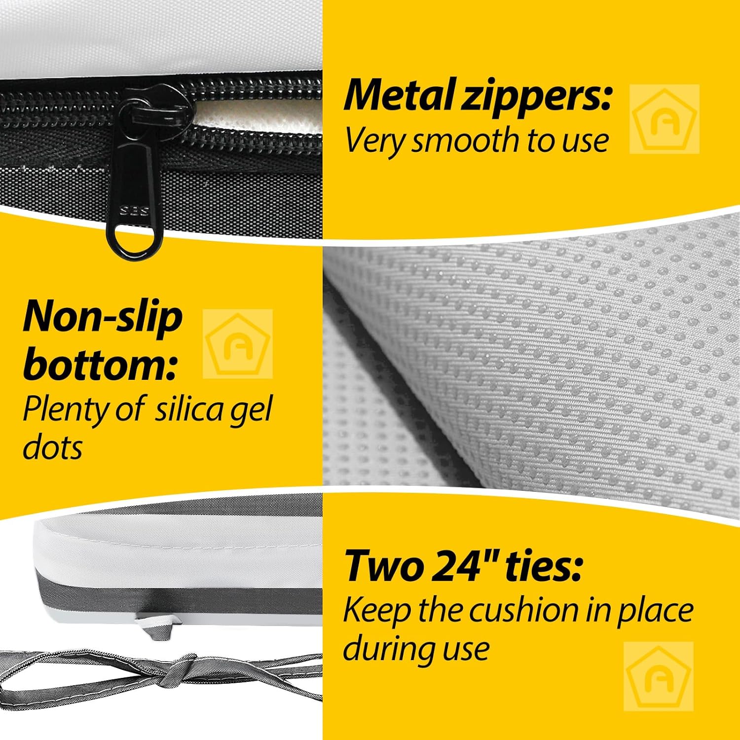 - Wide Use & Tips: These outdoor dining chair cushions fit pools, patios, balconies, decks, backyards, and gazebos. Foam inserts and covers are packed separately in bags and placed in one box—check all parts. Easy assembly required