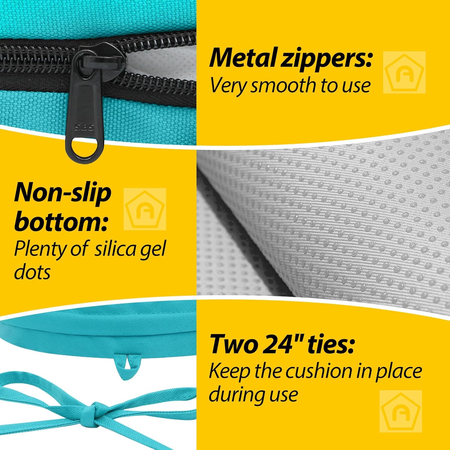 - Non-slip Ties and Piped Edge: The two non-slip ties can be fastened to your furniture to keep the outdoor cushion in place