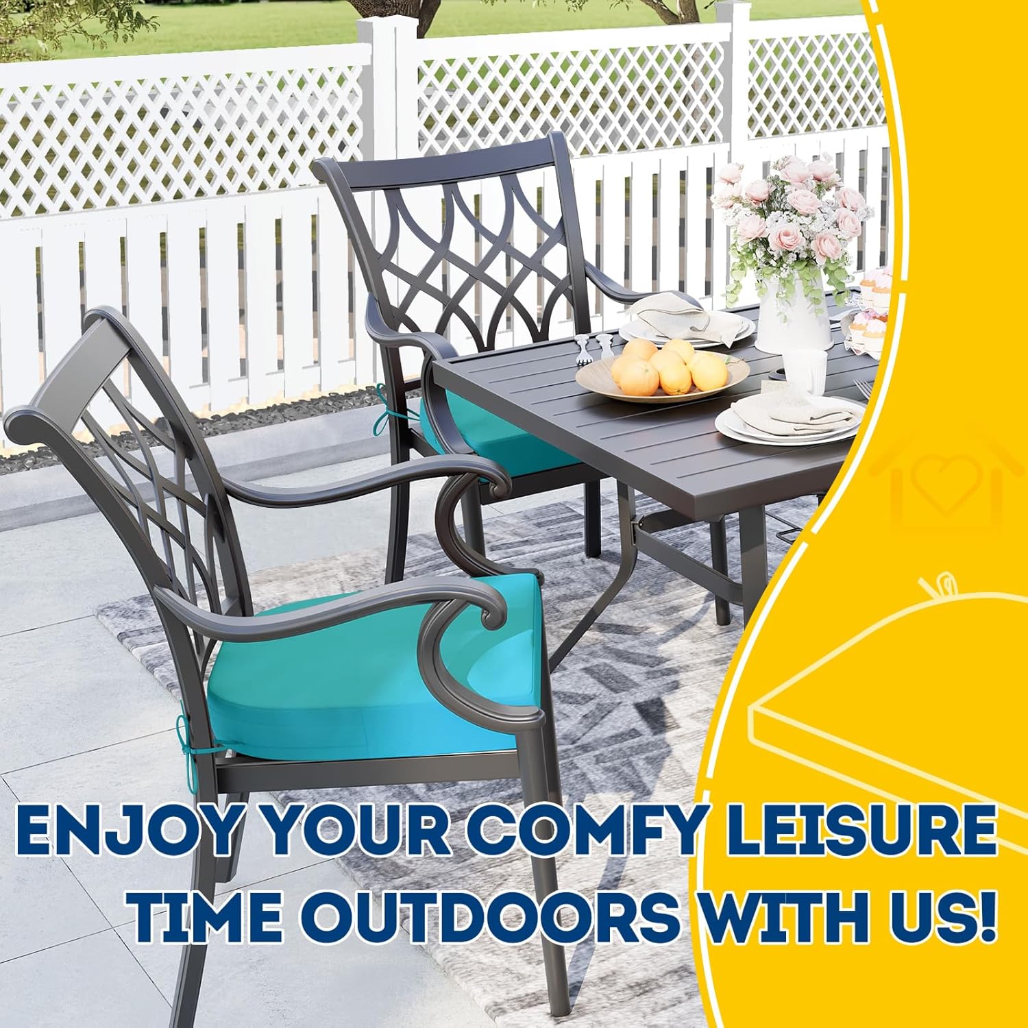 - Wide Use & Tips: These outdoor dining chair cushions fit pools, patios, balconies, decks, backyards, and gazebos. Foam inserts and covers are packed separately in bags and placed in one box—check all parts. Easy assembly required