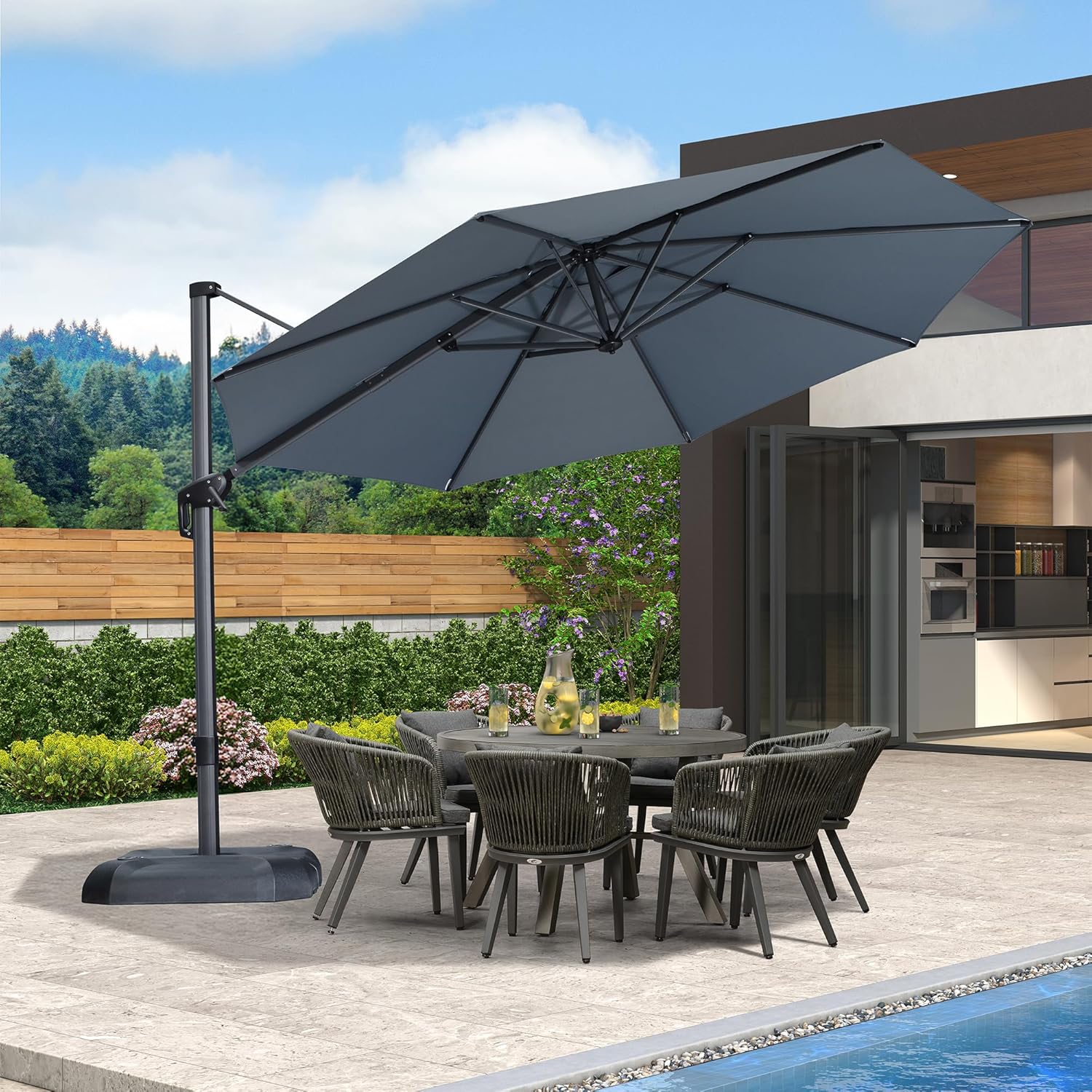 PURPLE LEAF 11 Feet Patio Umbrella Outdoor Cantilever Round Umbrella Aluminum Offset Umbrella with 360-degree Rotation for Garden Deck Pool Patio Light Grey