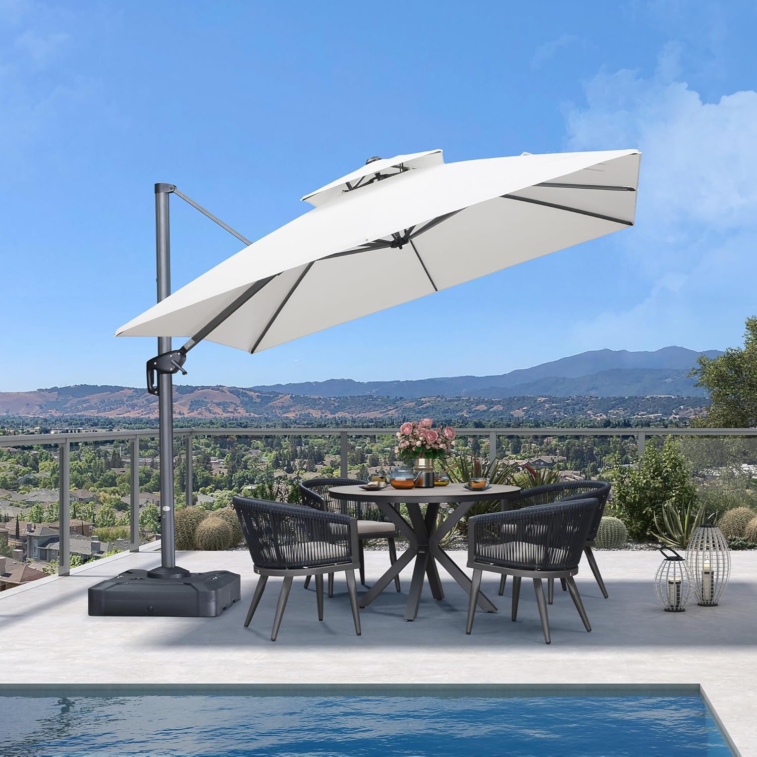 PURPLE LEAF Cantilever Umbrella 10FT Heavy Duty Outdoor Large Double Top Offset Hanging 360° Rotation Square Umbrella for Garden Patio Deck Pool Backyard Canvas Natural
