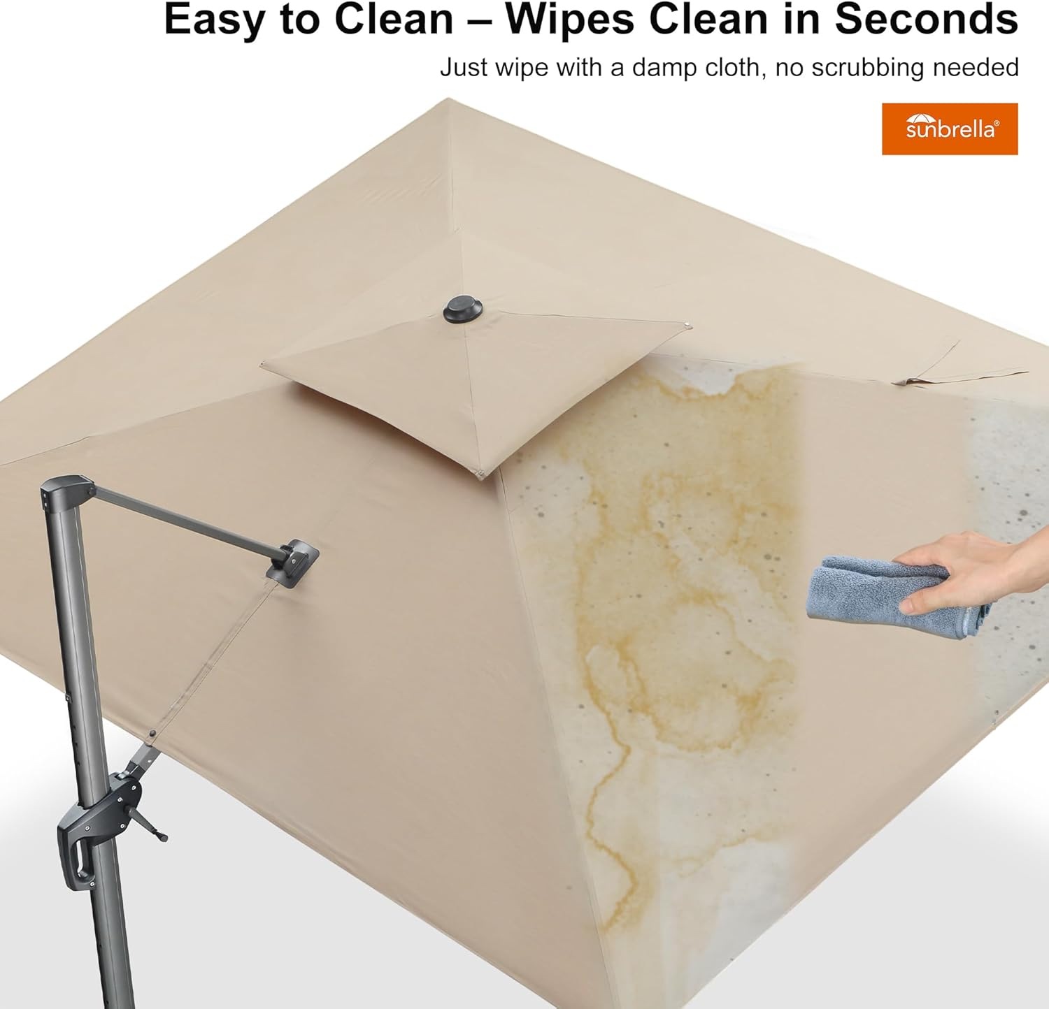- Superior UV Protection: Featuring industry-leading fabric, this cantilever umbrella blocks over 98% of UV rays to effectively reduce skin cancer risks. 5 years of fade resistance, water and stain resistance.