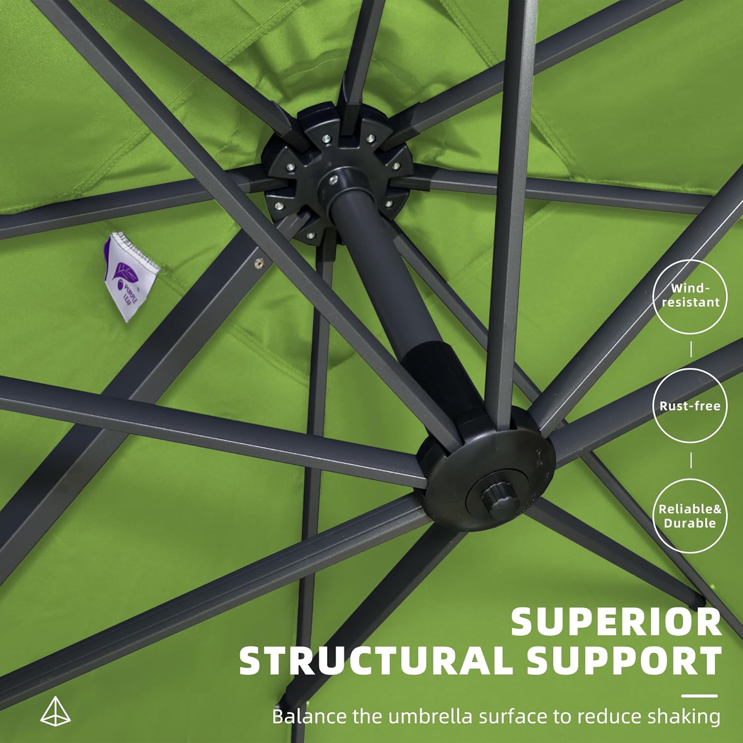 PURPLE LEAF 10' X 13' Patio Umbrella Outdoor Cantilever Rectangle Umbrella Aluminum Offset Umbrella with 360-degree Rotation for Garden Deck Pool Patio Apple Green