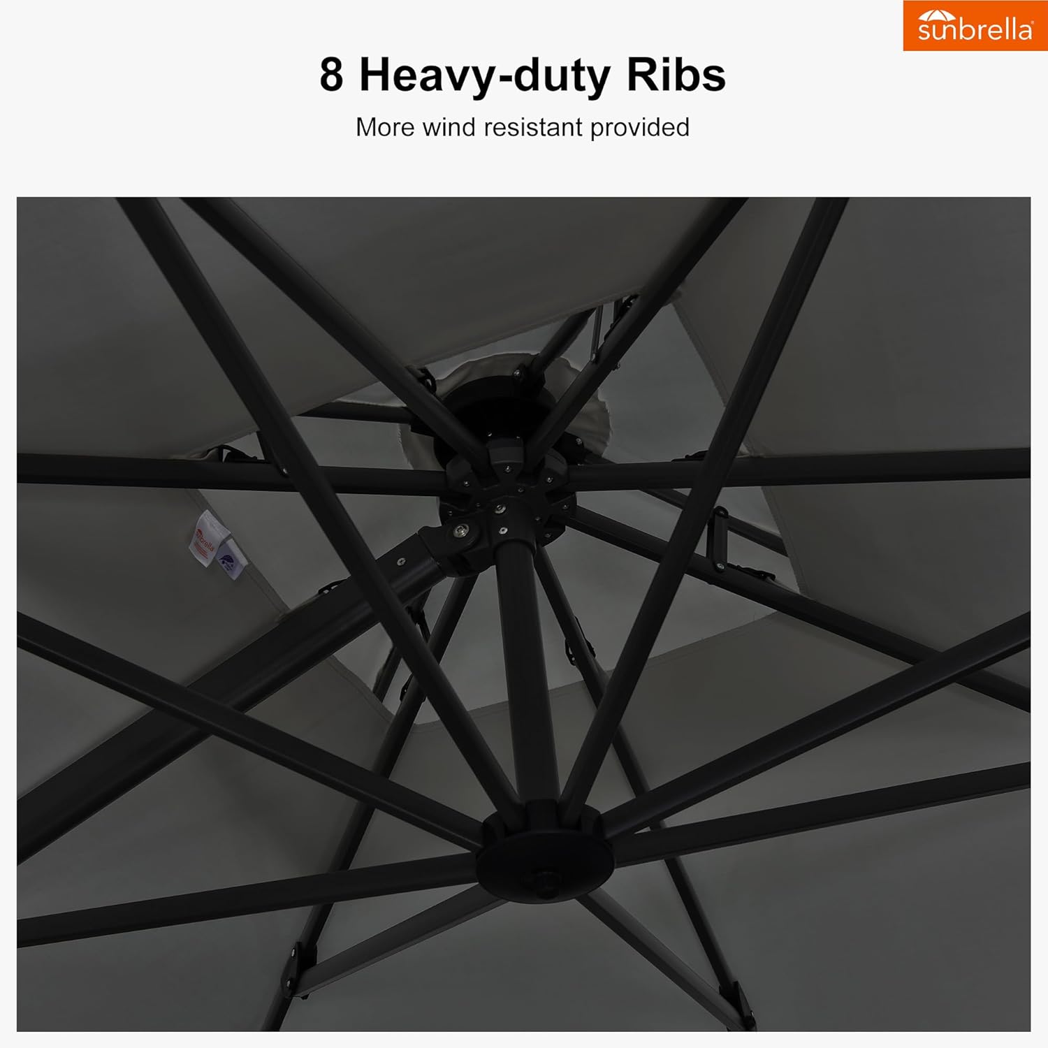 - Sturdy Aluminum Construction: Featuring a full aluminum frame with powder-coated finish and 8 heavy-duty ribs, this patio umbrella is designed for strength and longevity, ensuring reliable support and enduring performance.