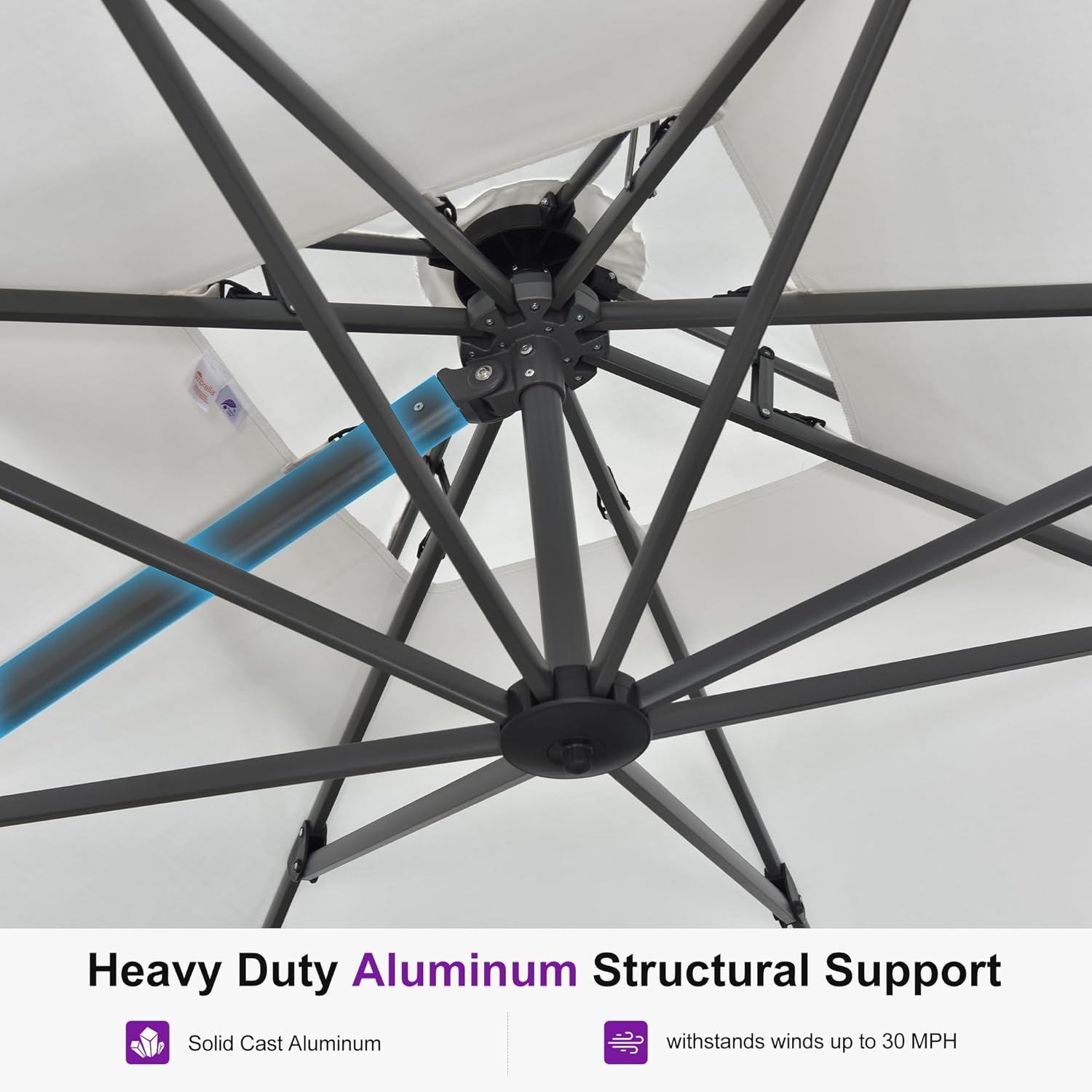 - Sturdy Aluminum Construction: Featuring a full aluminum frame with powder-coated finish and 8 heavy-duty ribs, this patio umbrella is designed for strength and longevity, ensuring reliable support and enduring performance.