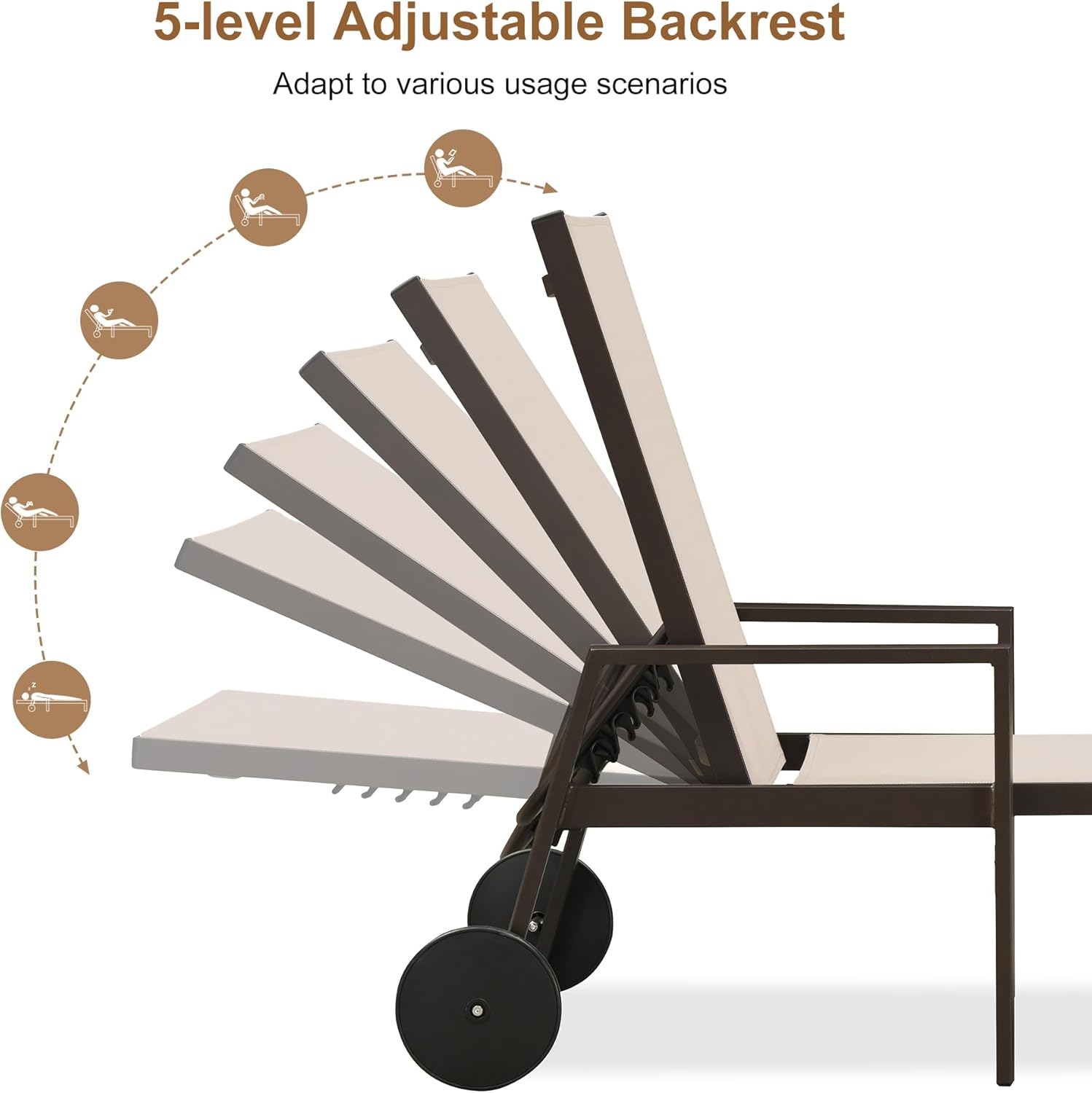 - CONVENIENT MOVING: The pool lounge chairs feature two back wheels, you can move the outdoor lounge chairs easily and start sunbathing anytime, anywhere.