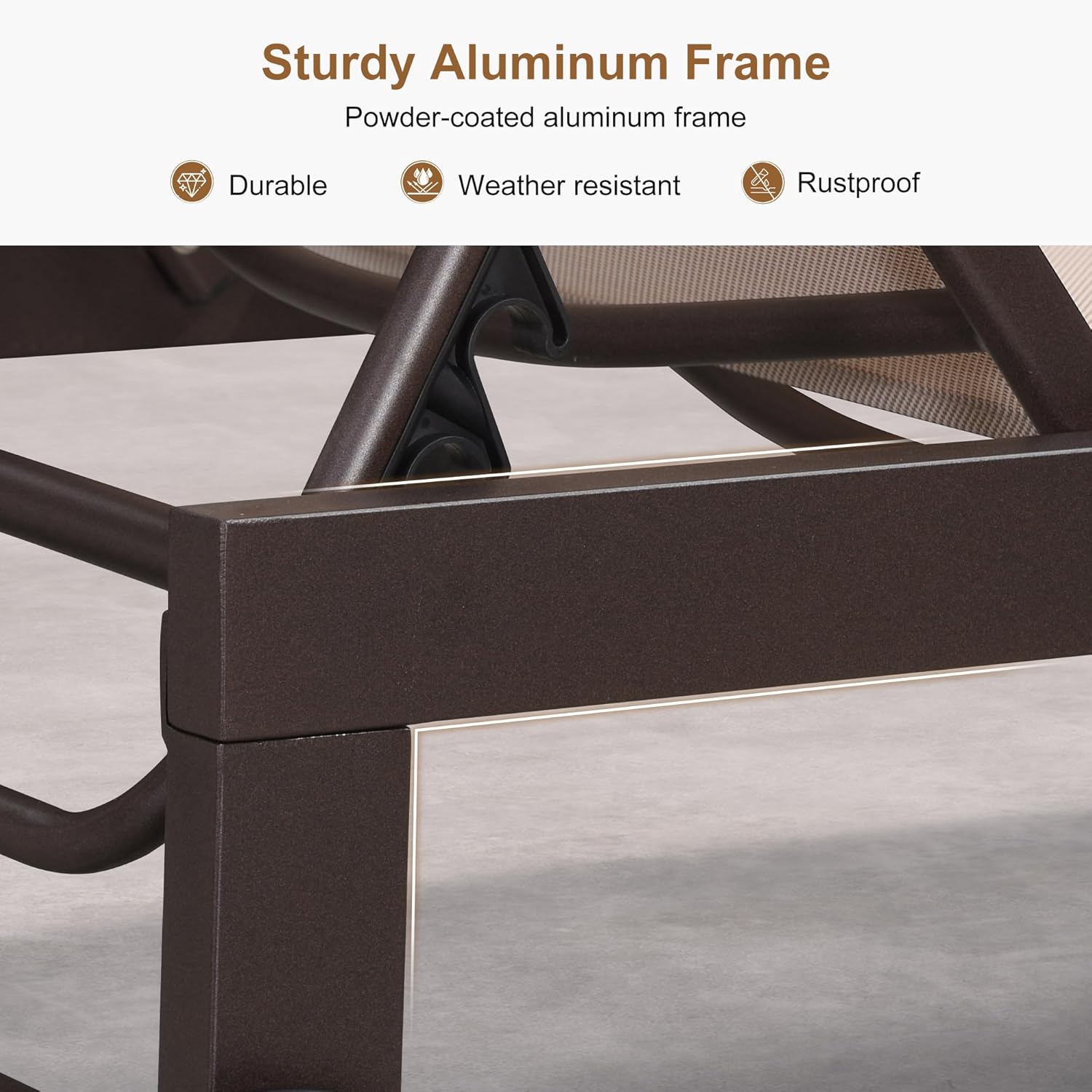 - CONVENIENT MOVING: The patio chaise lounger for outside feature two back wheels, you can move the lounge chairs for outside easily and start sunbathing anytime, anywhere.