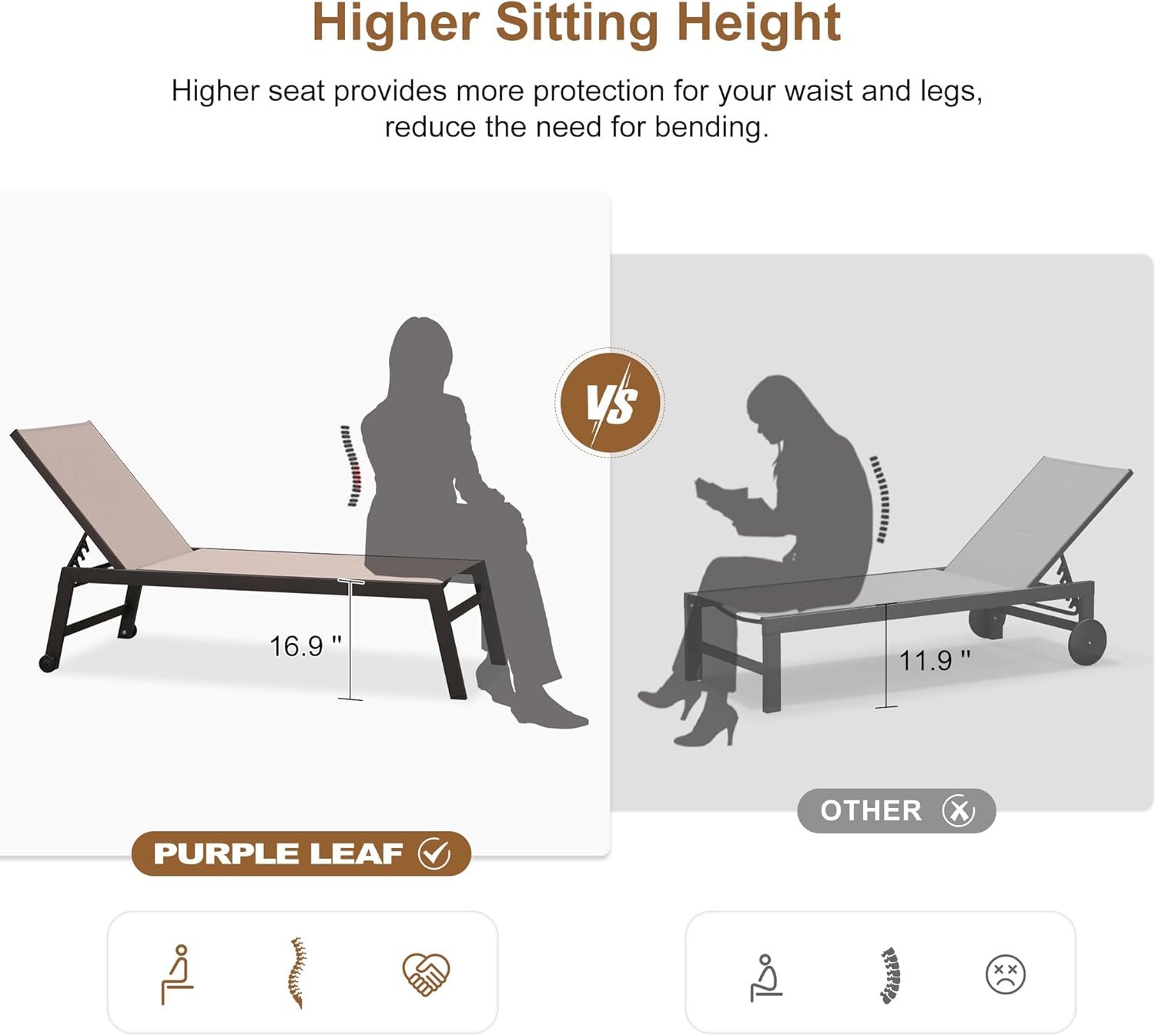 - EXTENDED EDITION: This pool lounge chairs dimensions: 82.6"Lx29.5"Wx37.7"H, 9 inches longer and 3 inches higher than the standard style, more suitable for tall people, allowing you to lie flat more confortably and get up more conveniently.