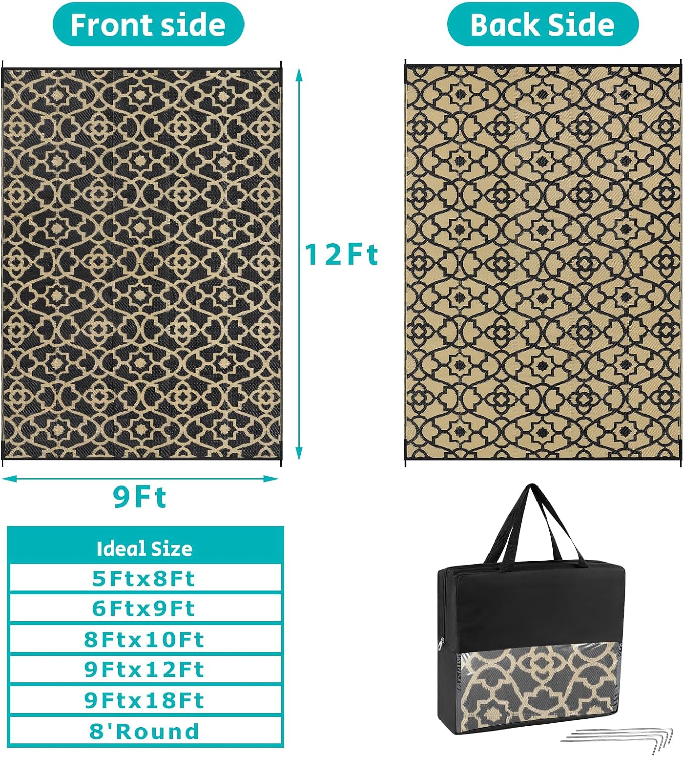- Versatile Outdoor Carpet: The indoor outdoor plastic rugs have multiple choice in different colors(4'x6',5'x8',6'x9',8'x10',9'x12',9'x18',8'round), is ideal for a variety of indoor outdoor activities,like patio mat, deck rug, garden rug, beach mat, picnic mat, BBQ party mat, rv camping rug,pool rug,outdoor doormat,garage rug,front door mat,allowing you to have plenty of imaginable space for more fun.