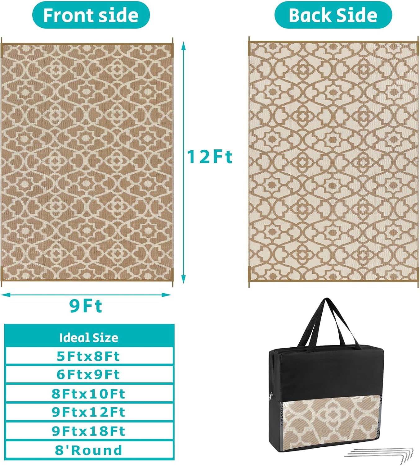 - Versatile Outdoor Carpet: The indoor outdoor plastic rugs have multiple choice in different colors(4'x6',5'x8',6'x9',8'x10',9'x12',9'x18',8'round), is ideal for a variety of indoor outdoor activities,like patio mat, deck rug, garden rug, beach mat, picnic mat, BBQ party mat, rv camping rug,pool rug,outdoor doormat,garage rug,front door mat,allowing you to have plenty of imaginable space for more fun.