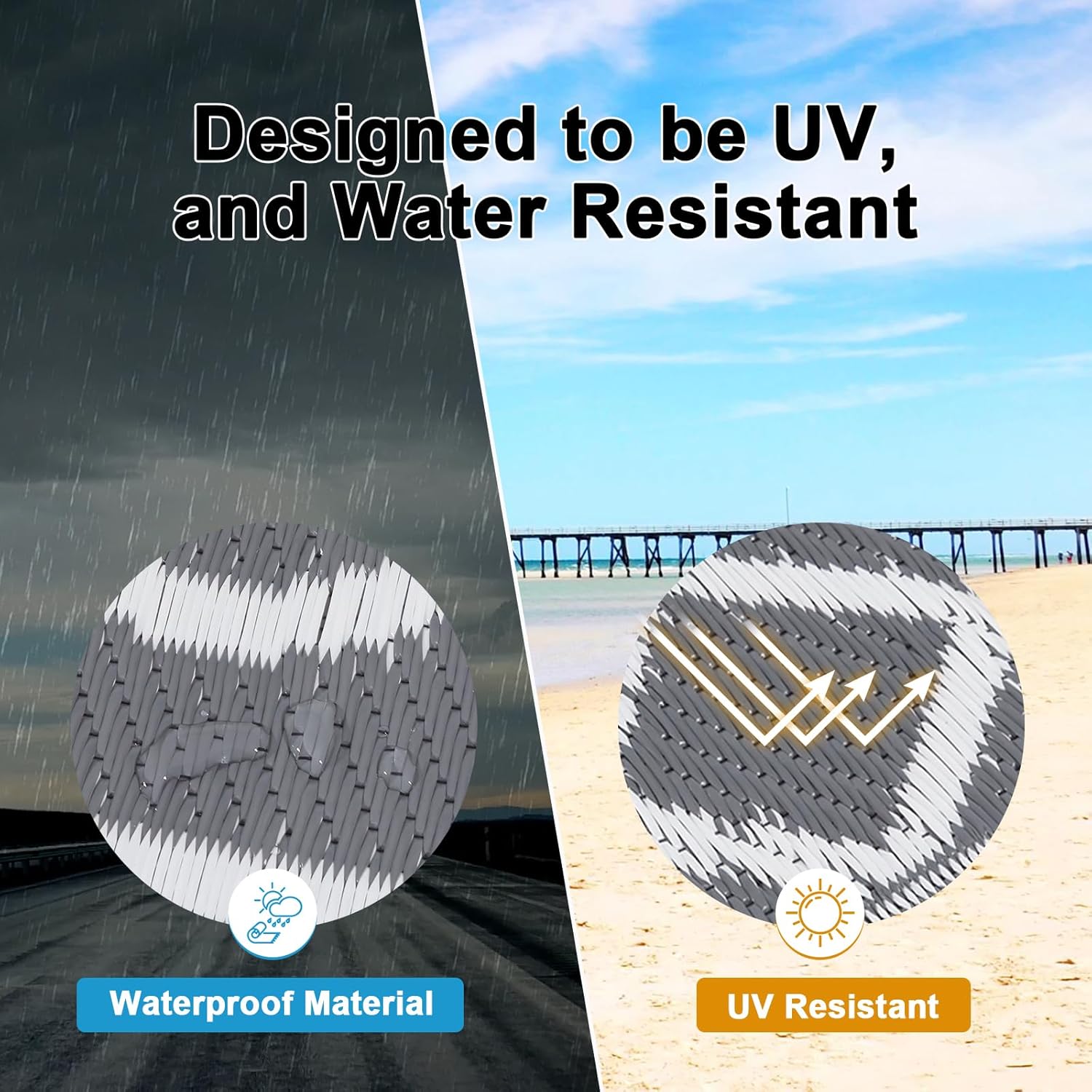 • Easy Maintenance Waterproof Patio Rugs : Compared with other camper rugs, this camping outdoor rug is simply wipe or hose off; For a deep clean, you can use a wet soft cloth with mild soap and rinse with water.