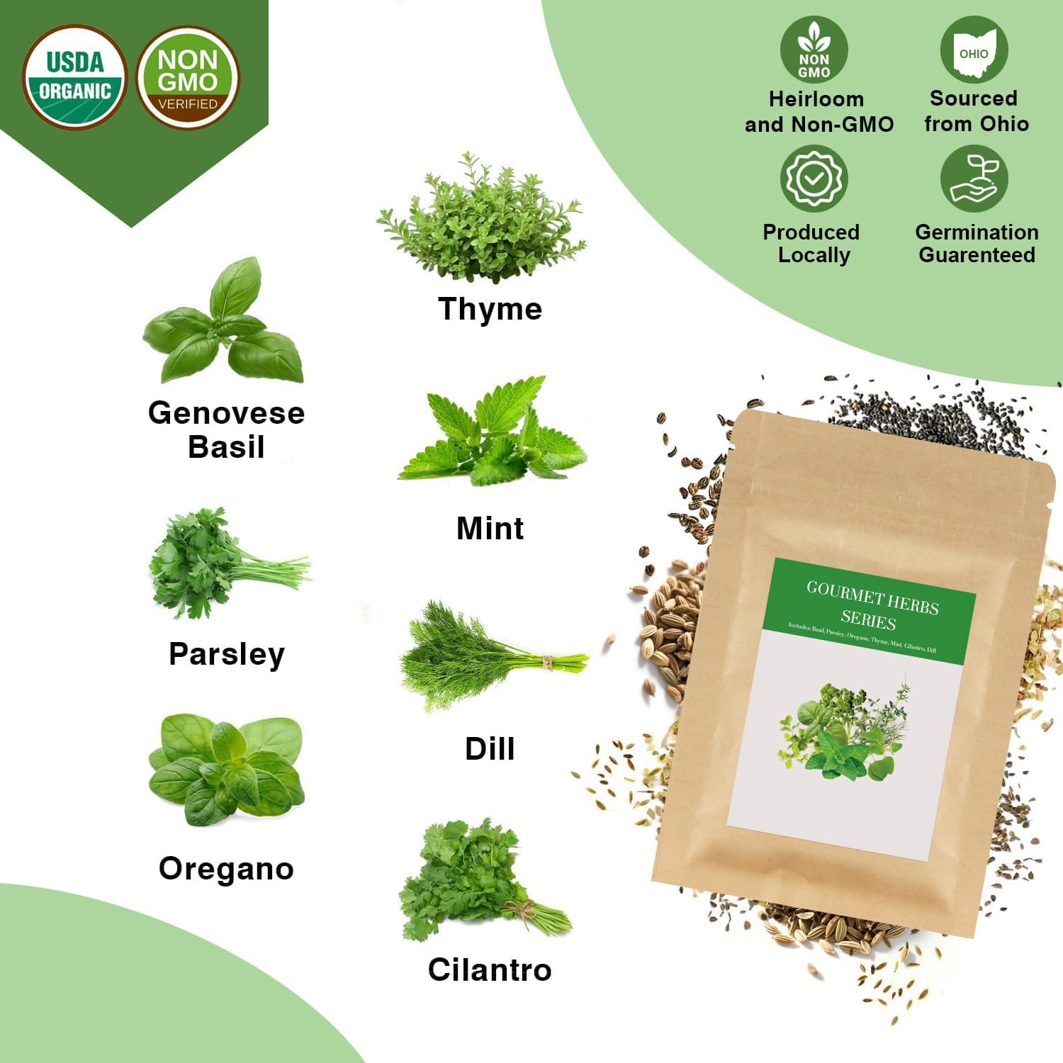 Gourmet Herbs Seed Pod Kit for AeroGarden, iDoo, Ahopegarden, MUFGA Hydroponics Garden with Basil, Parsley, Thyme, Mint, Cilantro, Dill, Oregano - Compatible with All Hydroponics (12-Pod)