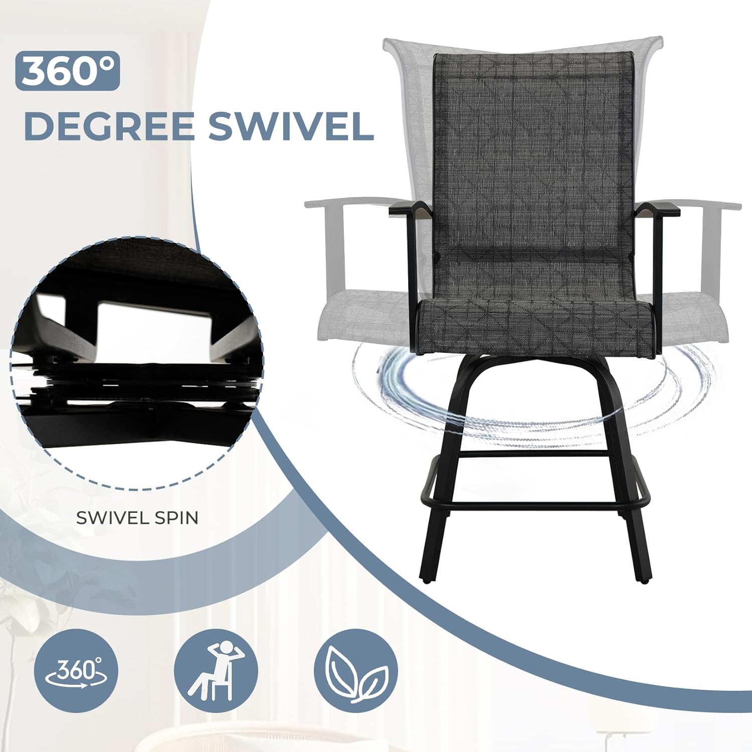 - Functional Bar Stools: The balcony bar chair with 360 ° free rotation design, combined with the reinforced design of double support rods at the bottom, can enjoy the outdoor scenery 360 ° freely