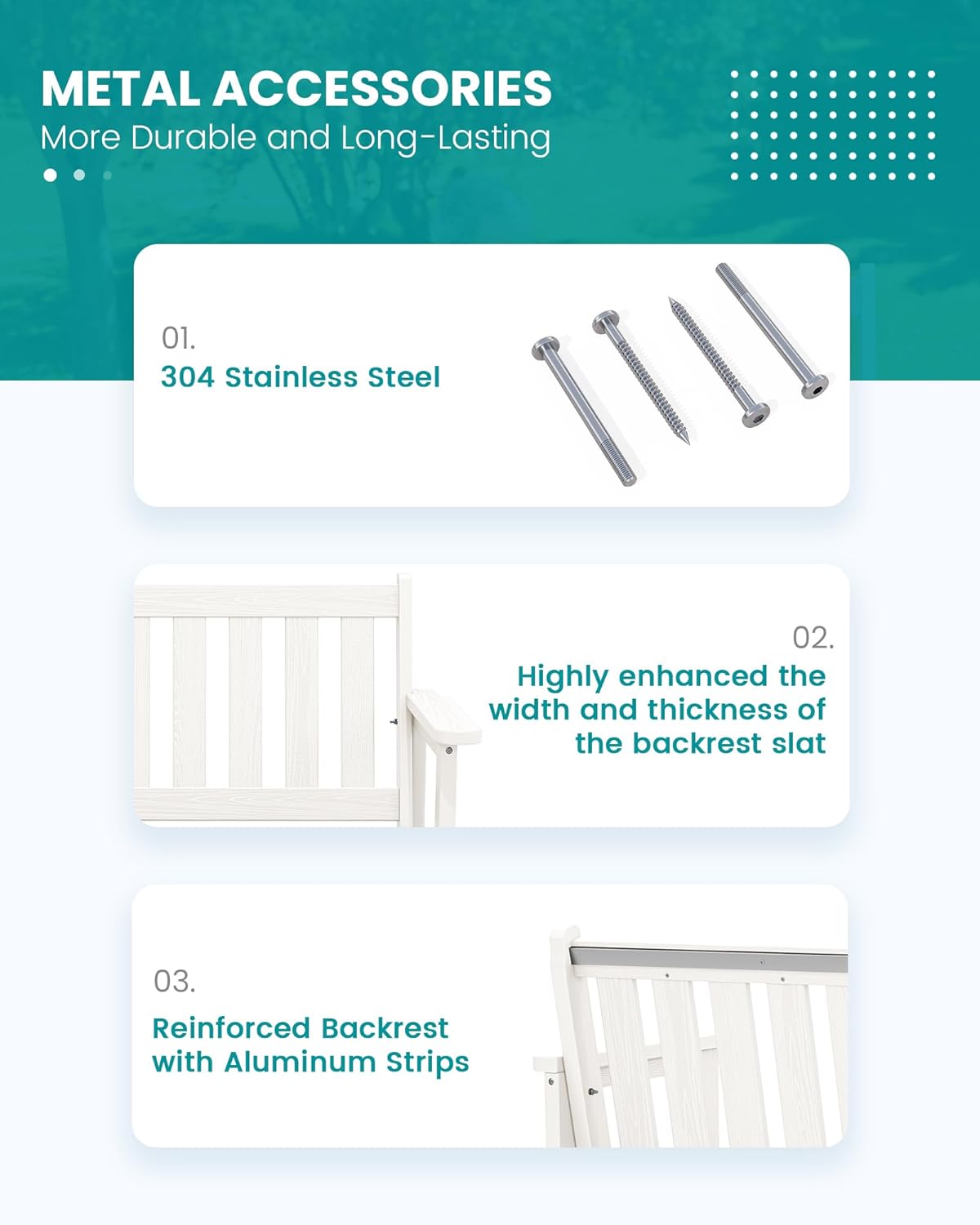 - High Weight Capacity: Tested to support up to 660 lbs, this outdoor bench is suitable for people of various body types and sizes. Its sturdy structure and premium materials ensure lasting performance.