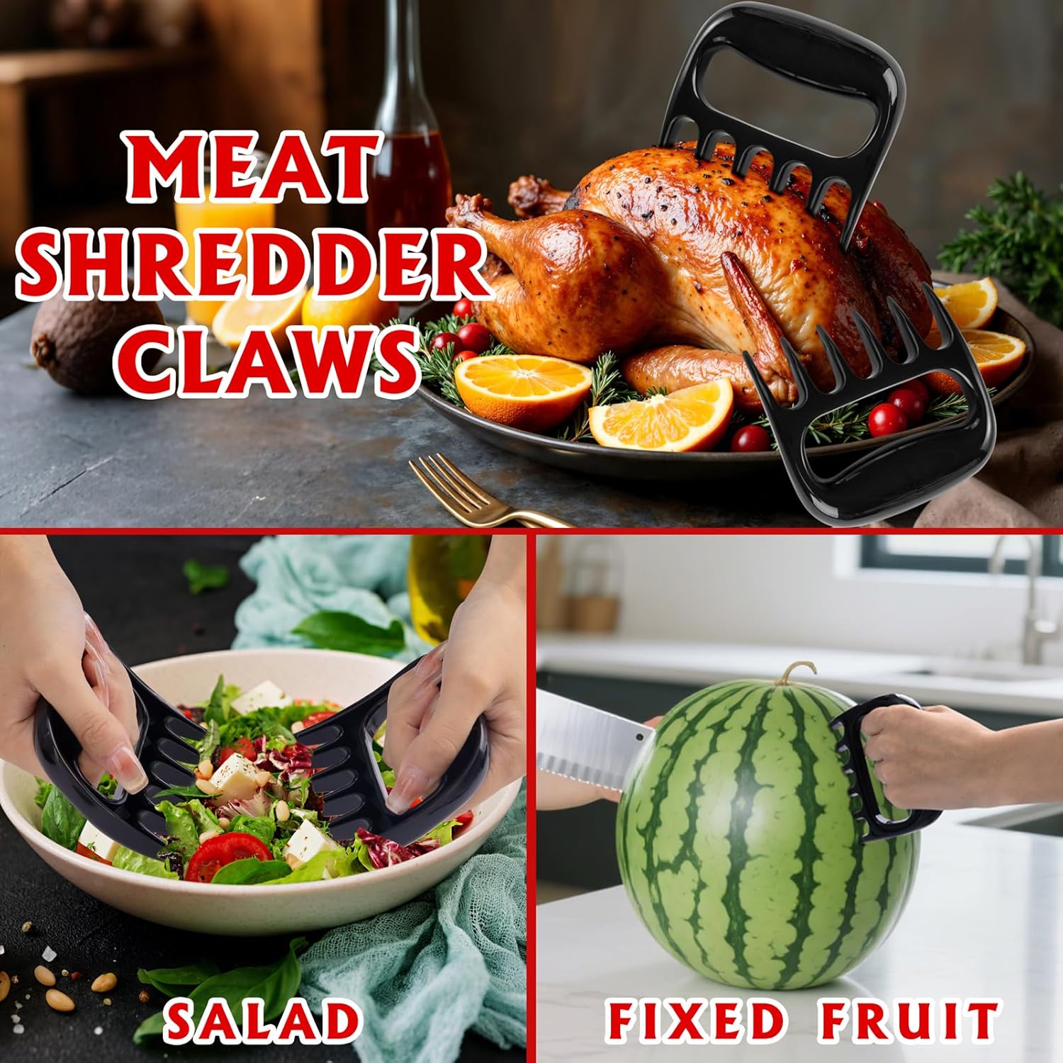 - 【Versatile grill set】: Besides the commonly found versatile tools,It includes 1grill mats for cooking preventing and food from sticking to the grill;Cleaning Brush for cleaning the grill afterit has cooled down;a meat shredders claws separate the meat from bone or tear it.