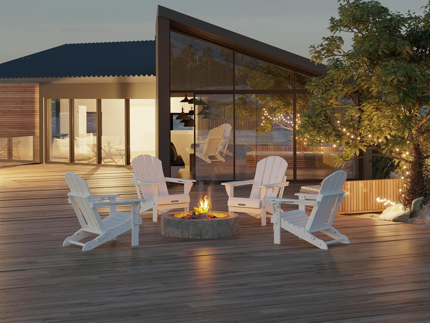 MUCHENGHY Folding Adirondack Chairs 4 Pack, Patio Chairs, Lawn Chairs, Outdoor Chairs, Adirondack Chair Plastic, Fire Pit Chairs, Weather Resistant with Cup Holder for Deck, Backyard, Garden(White)