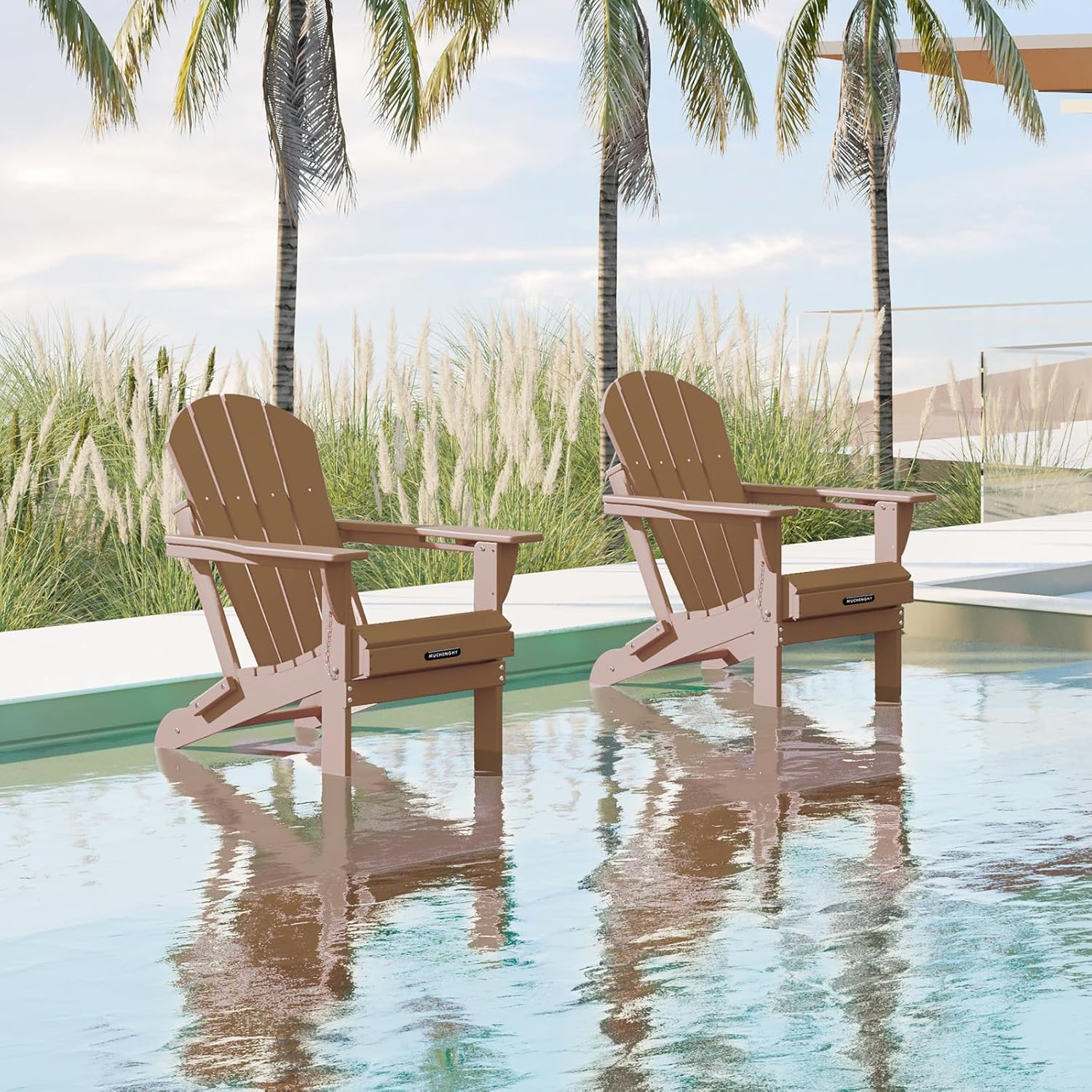 MUCHENGHY Folding Adirondack Chairs 4 Pack, Patio Chairs, Lawn Chairs, Outdoor Chairs, Adirondack Chair Plastic, Fire Pit Chairs, Weather Resistant with Cup Holder for Deck, Backyard, Garden(Teak)