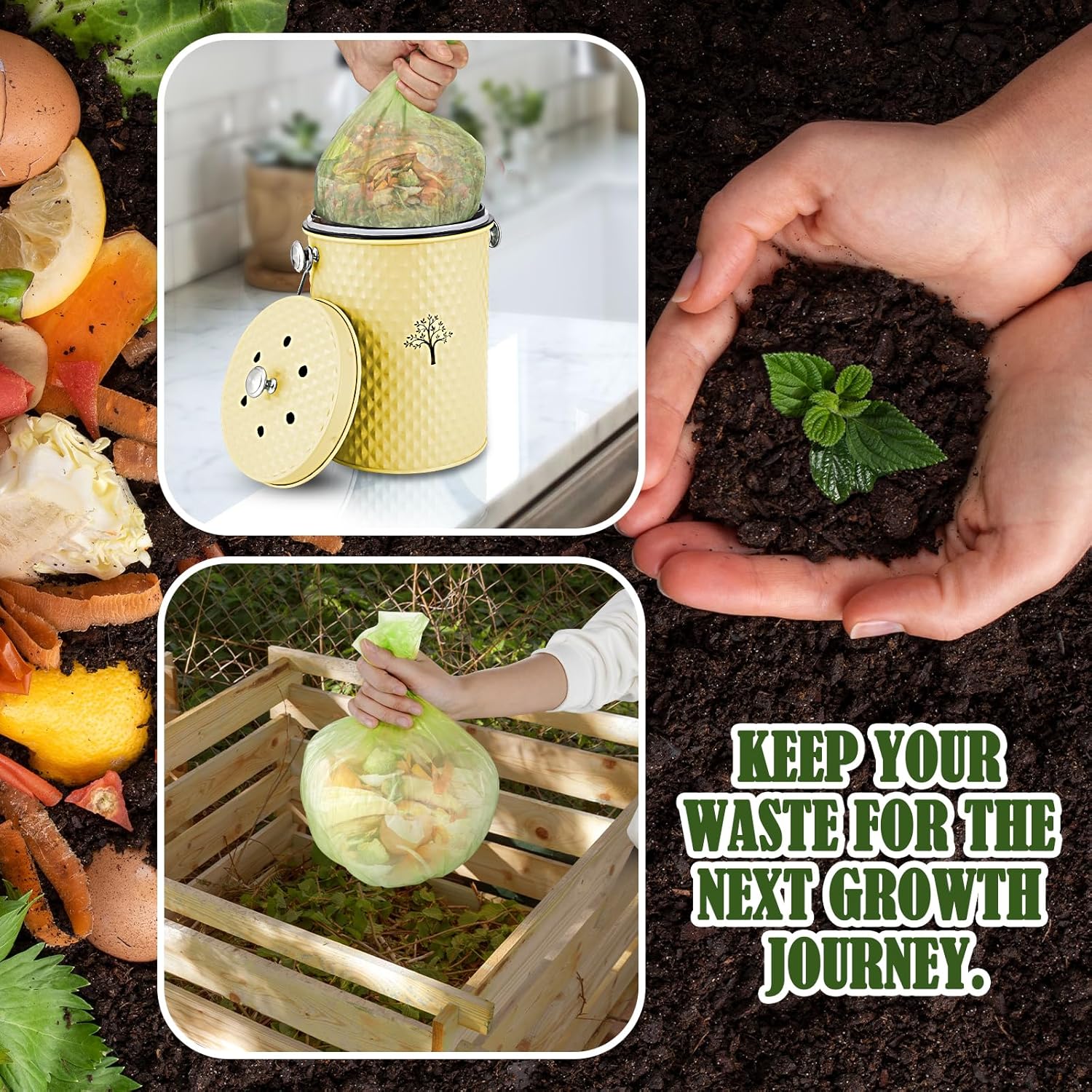- 【ENVIRONMENTALLY FRIENDLY COMPOSTING】:The compost bin is the perfect odorless storage container for organic kitchen waste in your home.It will complement any kitchen decor.Put kitchen waste into outdoor organic fertilizer for composting and reuse. Not only does it make a stylish decoration, but it’s also functional and great for a greener environment.