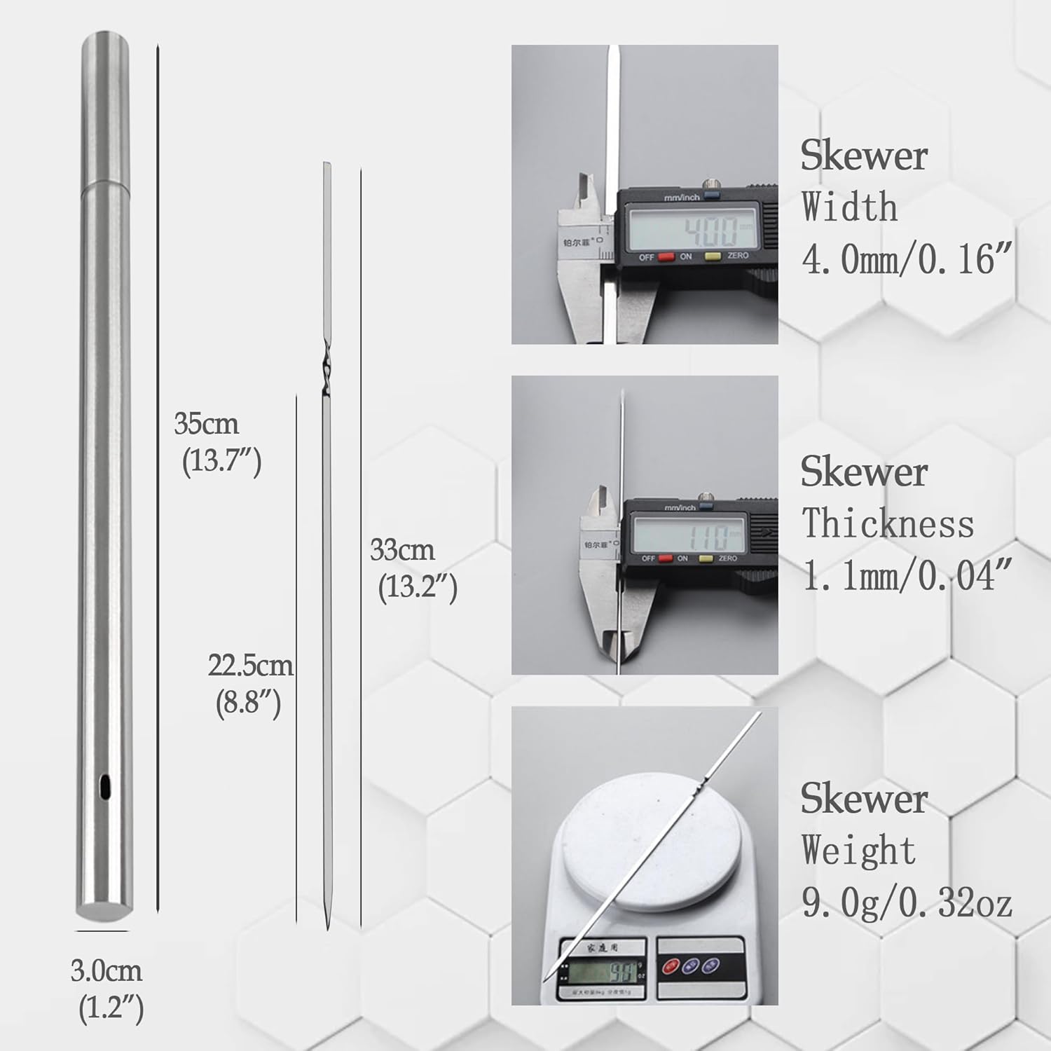 - ⚠️ 【Premium 304 Stainless Steel】Unlike cheap 201 steel or wooden skewers, our food-grade 304 steel resists rust and won’t bend, even with thick cuts of meat.