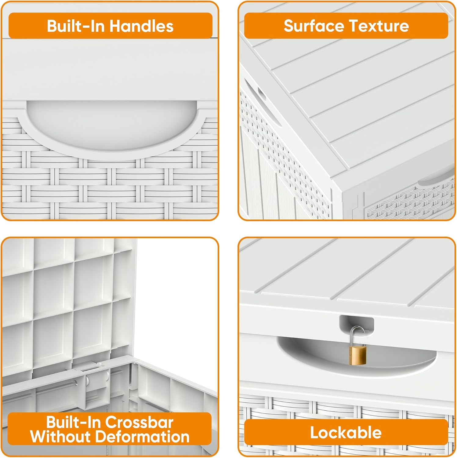 33 Gallon Resin Deck Box, Weatherproof Outdoor Storage Box for Patio, Garden and Yard, Lockable Waterproof Bin for Tools, Cushions, and Accessories, White