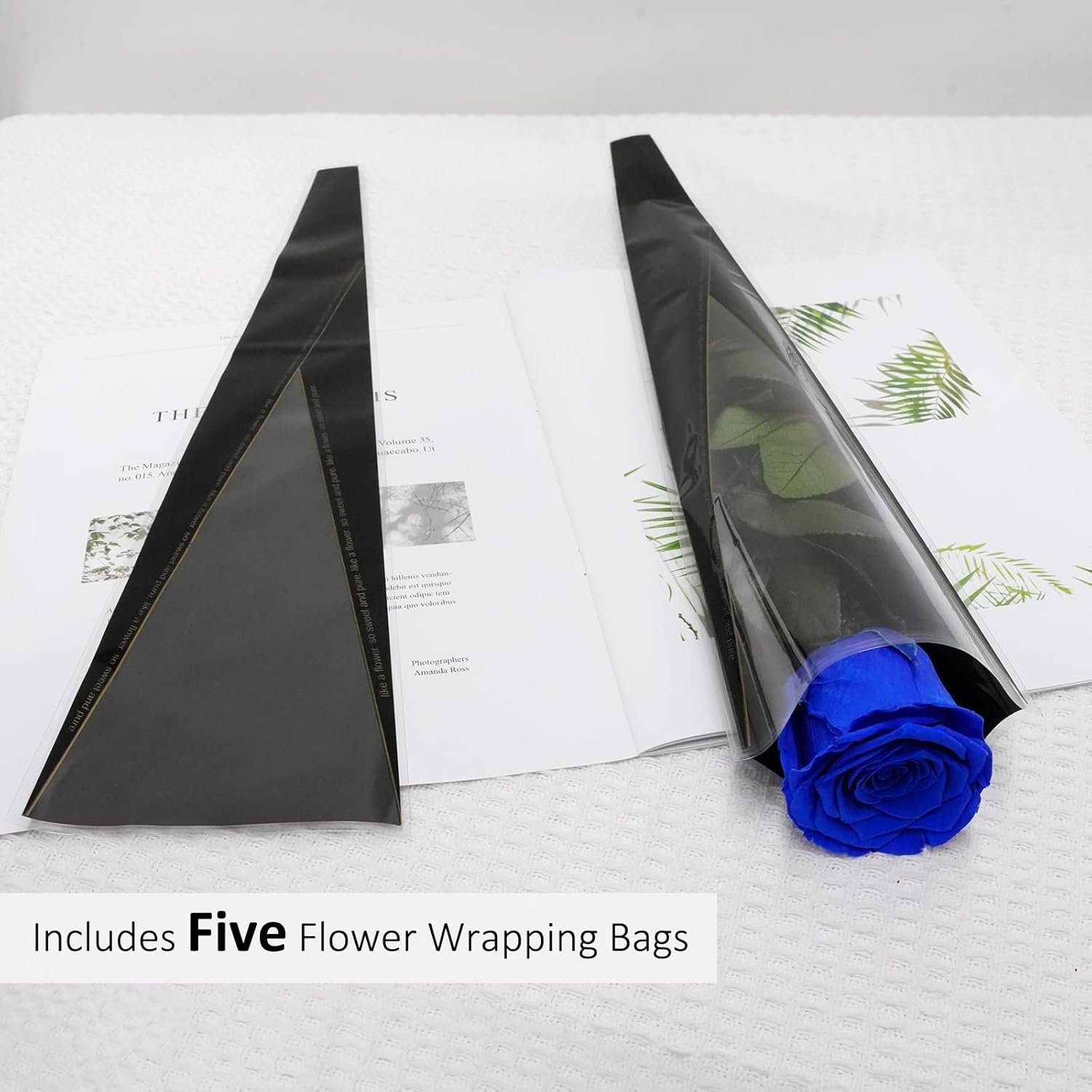 - Eternal Real Rose with Stems: Package includes- 5 x Preserved flowers roses, 5 x Flower wrapping bags, 1 x Greetings Cards,1 x Rose gift box. The preserved flowers rose with long stems are 30 to 32 cm(11.81 to 12.6 in) length, the roses have a diameter of 5 to 6 cm(1.97 to 2.36 in) and some of their thorns have been removed to avoid injury. Preserved flowers roses for delivery prime
