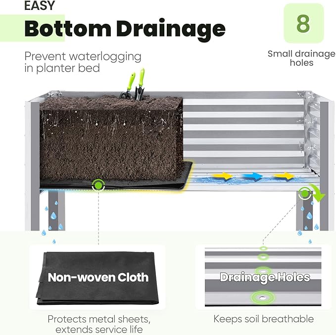 - 【Effortless Drainage】Ample drainage holes allow plant roots to breathe and drain properly. Comes with a non-woven fabric liner to ensure efficient drainage while containing soil, enabling worry-free indoor and outdoor use. The elevated garden bed is ideal for garden, backyard, balcony, and deck.