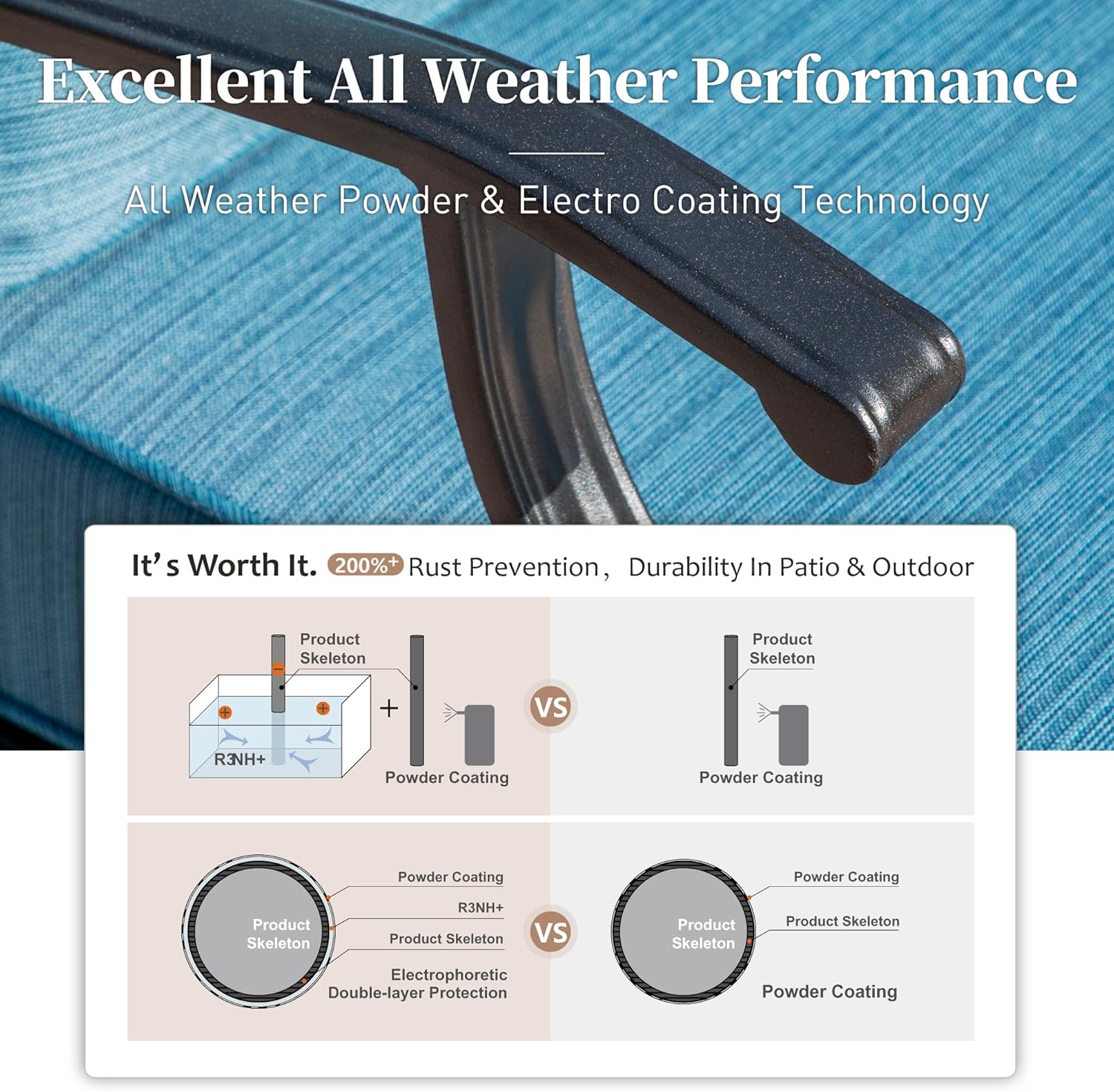 - ALL WEATHER METAL OUTDOOR PATIO CHAIRS: Our metal outdoor swivel rocker chairs focuses on providing a superior comfort experience. 31.5 Inch seating depth and 35 Inch high back design with 5.75" Inch high resilience cushions provide you with unrivalled outdoor seating relaxation experience. This outdoor furniture's diamond back design make this outdoor furniture more unique and exquisite.