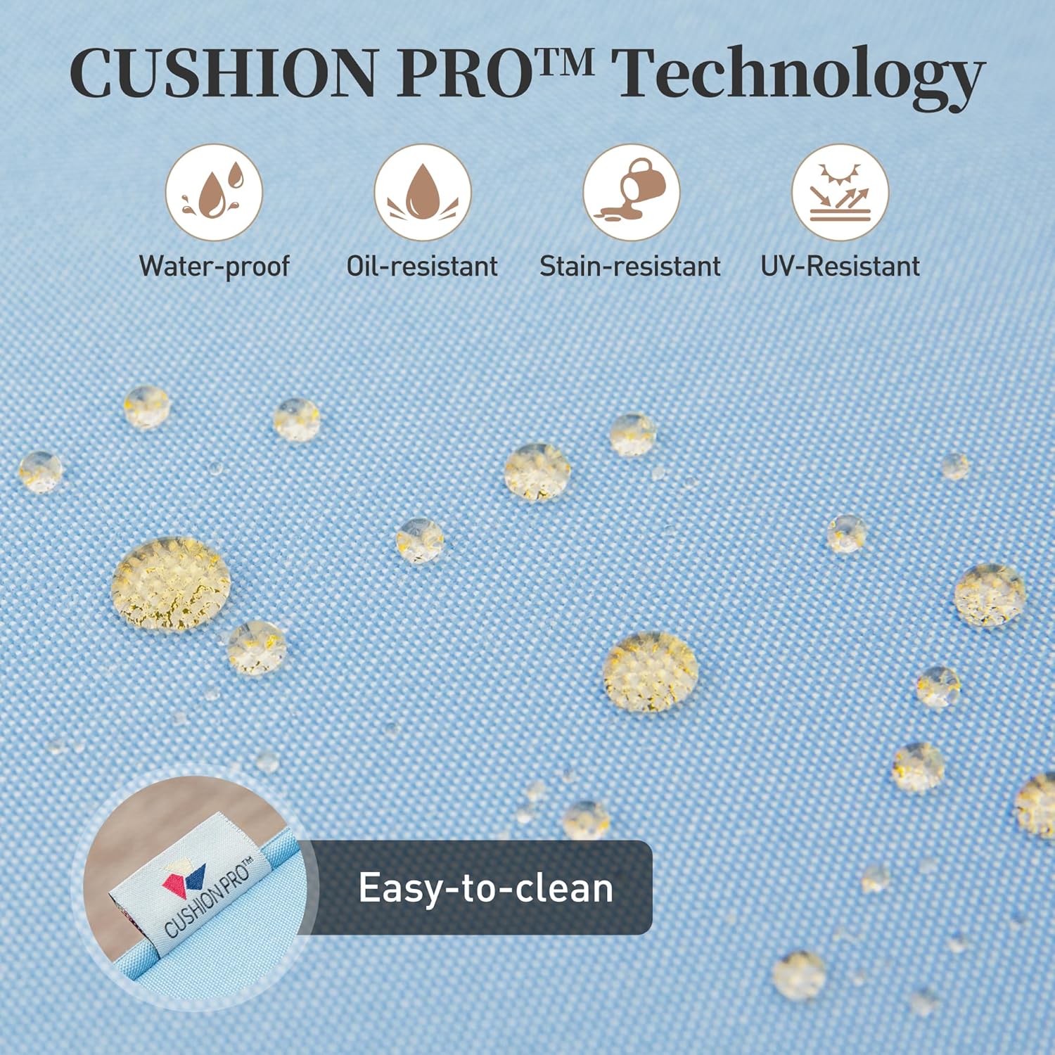 - ADVANCED CUSHION FABRIC TECH: Experience the happiness of easy maintenance with the SUNSHINE VALLEY patio swivel rocker chairs. The fabric of this patio sofa is made with patent CUSHION PRO technology. It has excellent waterproof, oil-proof, and stain-resistant properties making the dirt easily wiped down. It can really meet your outdoor leisure needs