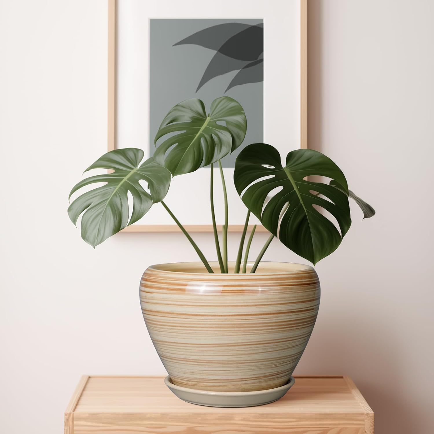 - 10 Inch Plant Pot: The ceramic planter is high-temperature fired stoneware which is durable lightweight and convenient for you to use