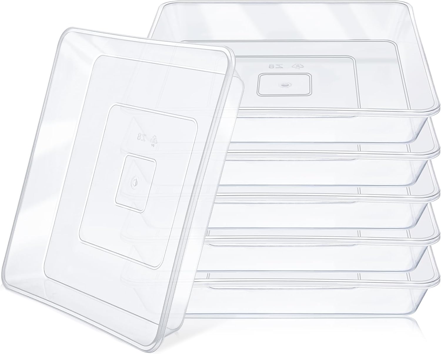 GREANER Square Plant Saucer, 8 Inch Plant Trays for Indoors No Holes, Clear Water Trays for Pots, Durable Flower Pot Saucers for Indoors and Outdoors(6 Packs)
