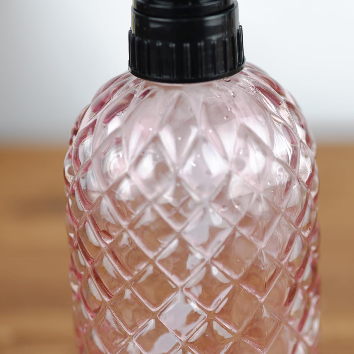 Glass Handheld Spray Bottle - 12oz Refillable Bottle ,Adjustable Nozzle Watering Can for Garden Plants Cleaning Solutions (Pink)