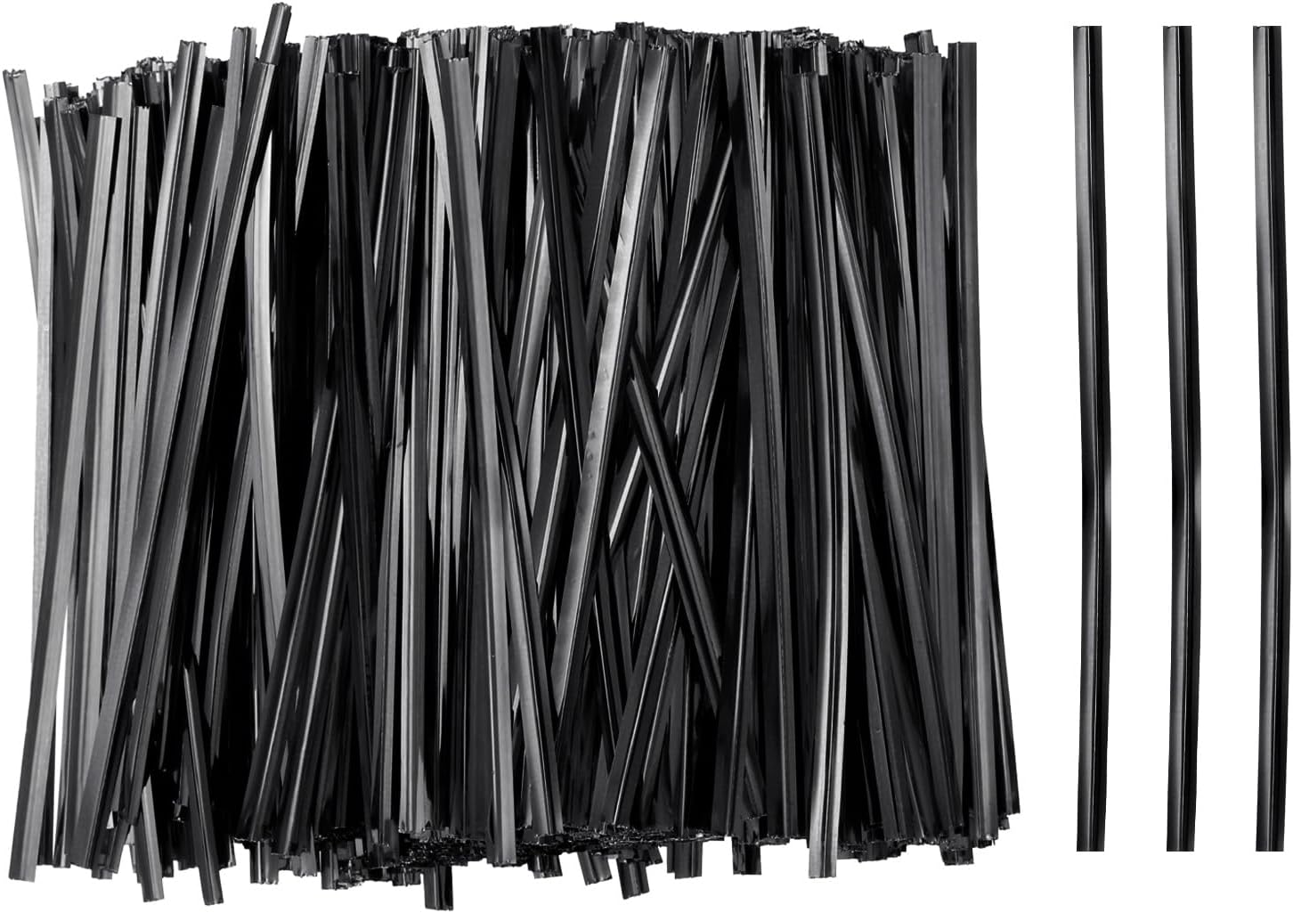 HARFINGTON 800pcs Bag Twist Ties 4" Reusable Plastic Metallic Twist Ties Wire Cable Ties for Party Bread Candy Cake, Black