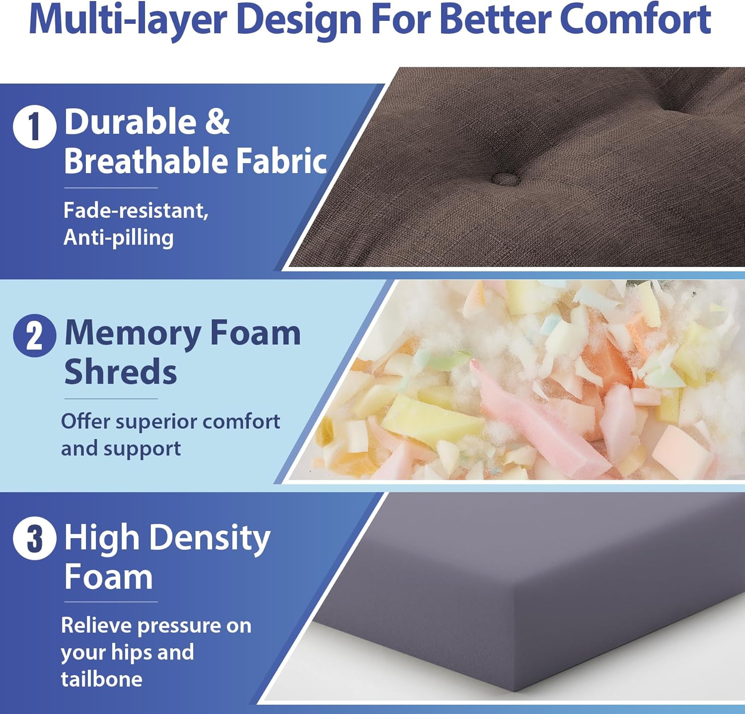 - 【Height-Adjustable Design】: This 3.5" dual-layer cushion combines a firm base foam with adaptive shredded memory foam. Remove the base to reduce height by 1.5" and repurpose it as a lumbar support. Achieve personalized comfort with two ergonomic configurations for versatile seating support.