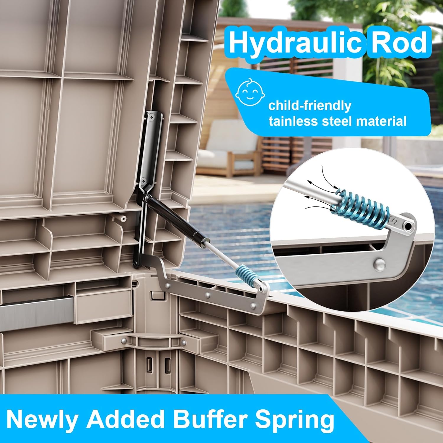 - EASY TO USE: The deck storage box is designed for convenience with built-in handles on both sides, allowing easy lifting and movement. Plus, for added security, you can install a password lock/small lock (not included) on the top cover