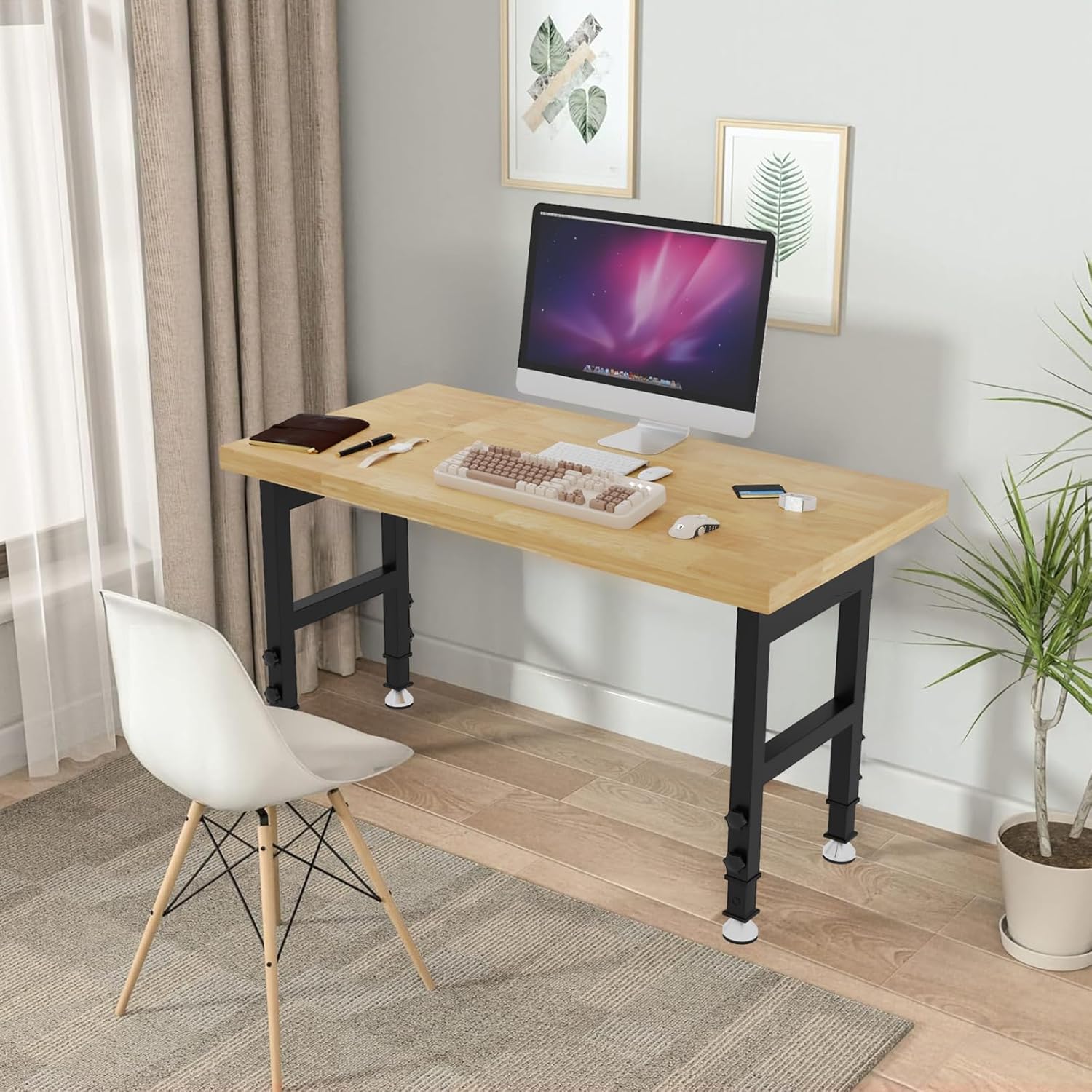 - [Sturdy Construction]: Crafted from cold-rolled steel, the frame ensures exceptional durability. Reinforced with four steel crossbars on each side, it offers superior stability. Equipped with 4 rubber feet, helping workbench stays firmly in place, preventing sliding and protecting your floors.