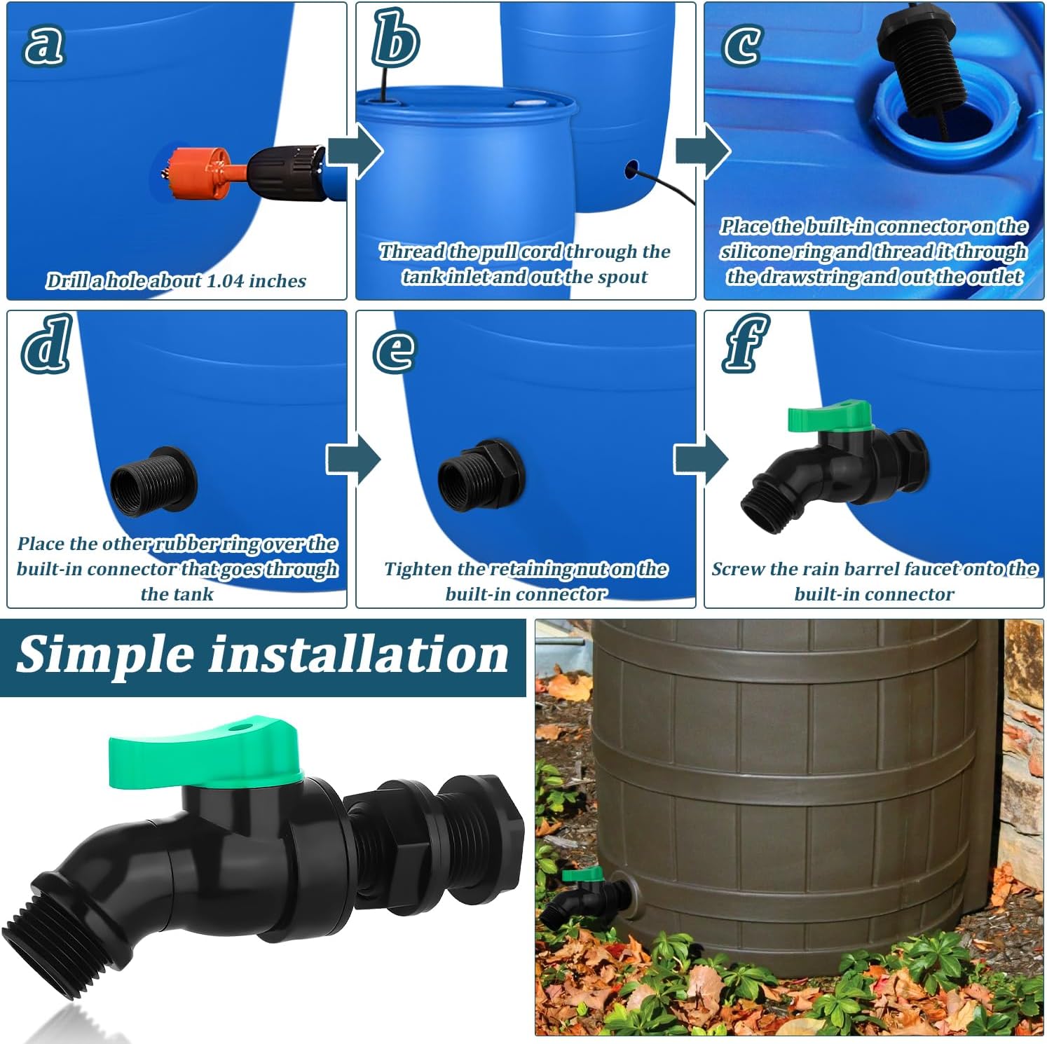 - Universal Fit & quick Installation: The rain barrel faucet fits most rainwater buckets or garden hose connectors, making it versatile and simple to install in various containers. We also have a towing rope that can be easily installed without entering the container